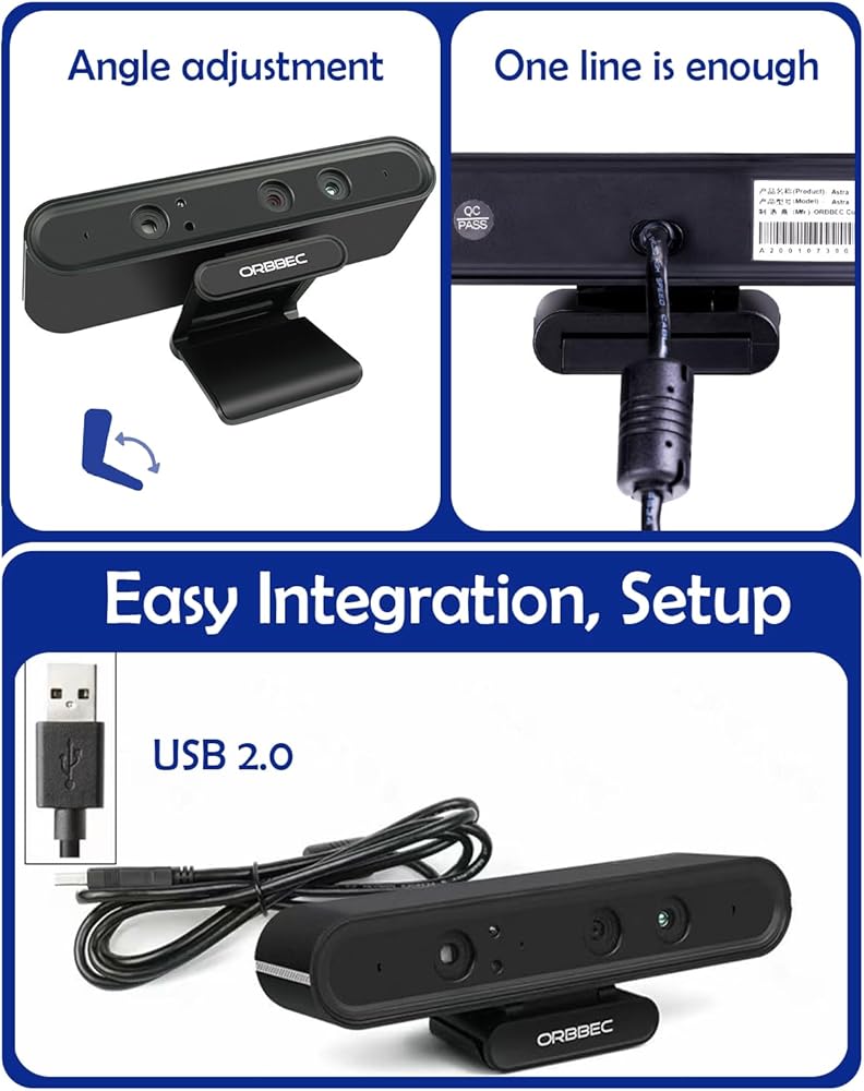 Plug-and-Play Integration for Fast Prototyping – USB 2.0 single-cable connection (power + data), direct drop-in replacement for legacy systems. Fully compatible with the Orbbec SDK and OpenNI, it enables lightning-fast integration into raspberry pi, ROS, Unity, or bespoke pipelines for robot vision, object manipulation, and 3D reconstruction projects, empowering robotics engineers to deploy precision depth sensing from concept to reality in hours, not weeks.