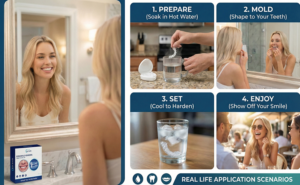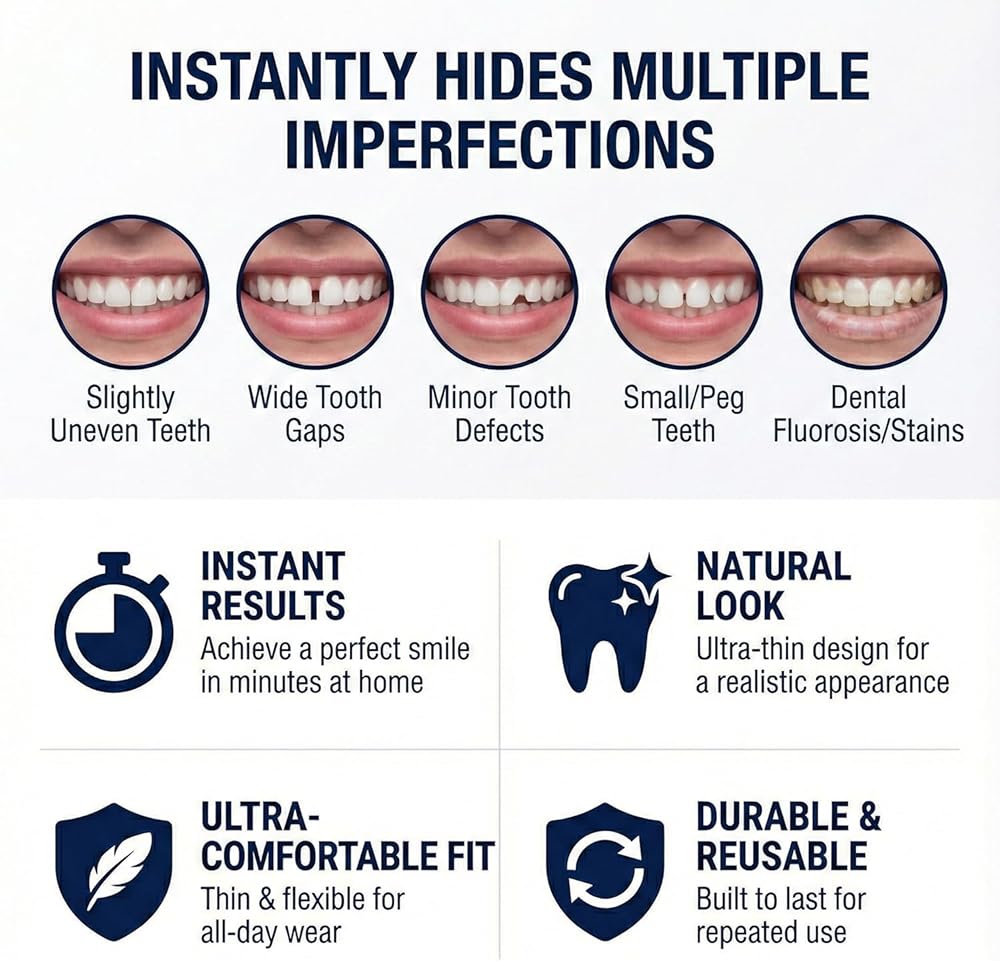 💖 توهج فوري للابتسامة: لا تدع الأسنان الملطخة أو المفقودة تفسد صورتك الشخصية! احصل على الابتسامة المثالية التي طالما أردتها في ثوانٍ. تغطي هذه القشرة سهلة التركيب العيوب على الفور، مما يمنحك ابتسامة بيضاء طبيعية وواثقة في المواعيد وحفلات الزفاف والحفلات.