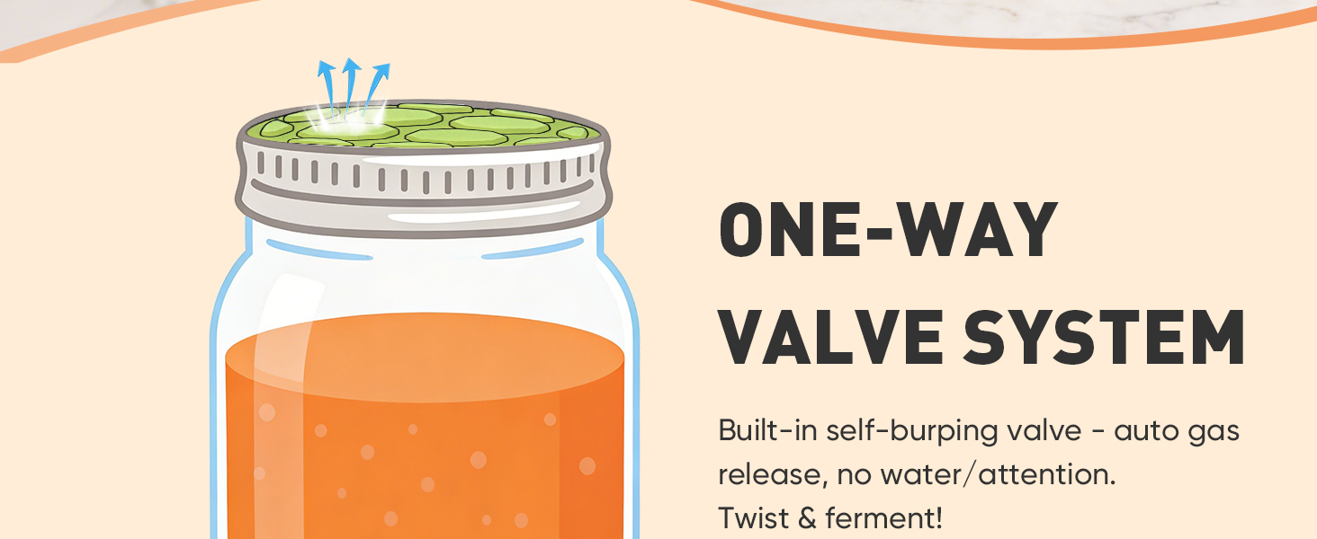 • 【صمام أحادي الاتجاه للتخمير الآمن】صمام مدمج أحادي الاتجاه يطلق الغاز تلقائيًا، ويمنع الغاز الزائد والضغط الزائد داخل الوعاء، ويضمن السلامة ومنع التسرب. لا يتطلب تشغيل يدوي، تجربة تخمير خالية من المتاعب