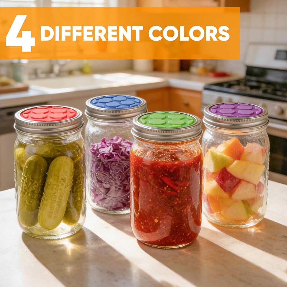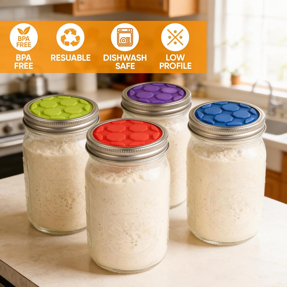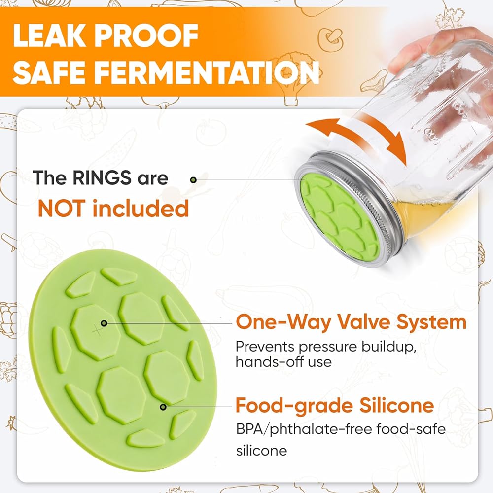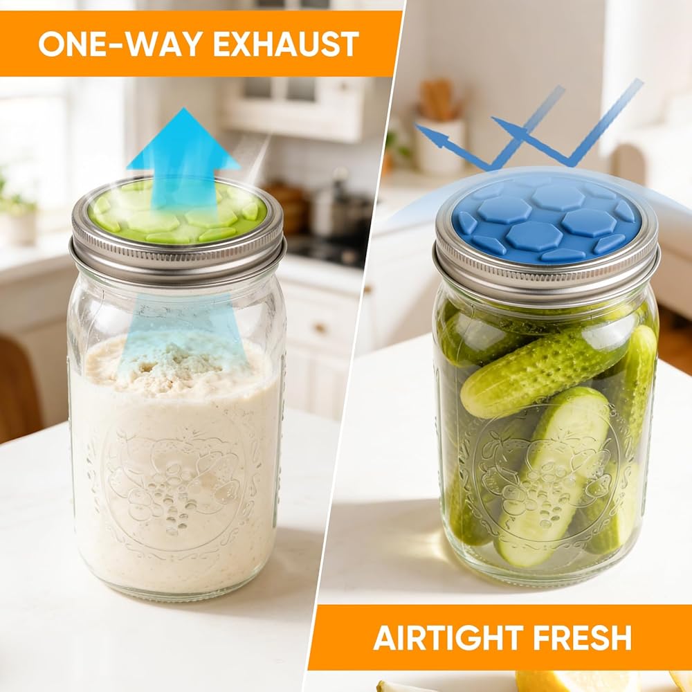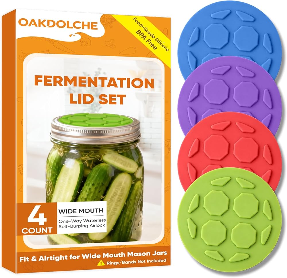 4 قطع من أغطية التخمير السيليكون لبرطمانات الماسون ذات الفم الواسع | صمام قفل الهواء في اتجاه واحد، التجشؤ الذاتي لمخلل الملفوف وبادئ العجين المخمر والبروبيوتيك (براءة اختراع)