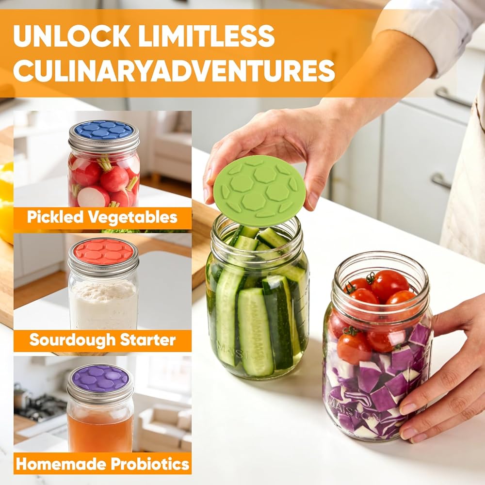 • 【مناسب تمامًا للبرطمانات ذات الفم العريض】تصميم بقطر 86 مم يناسب معظم أغطية برطمانات الماسون القياسية ذات الفم العريض، مما يخلق إغلاقًا محكمًا وآمنًا. ملاحظة: غير متوافق مع برطمانات الفم العادية.