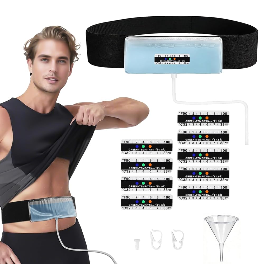مجموعة كاملة لاختبار البول من Sample Guard - حزام مخفي قابل للتعديل مقاس 43.3 بوصة مع حقيبة عينة بحجم 2-4 أونصة، وملصقات ميزان الحرارة وقمع سيليكون (أسود، مريح عالي التمدد) (قصير)
