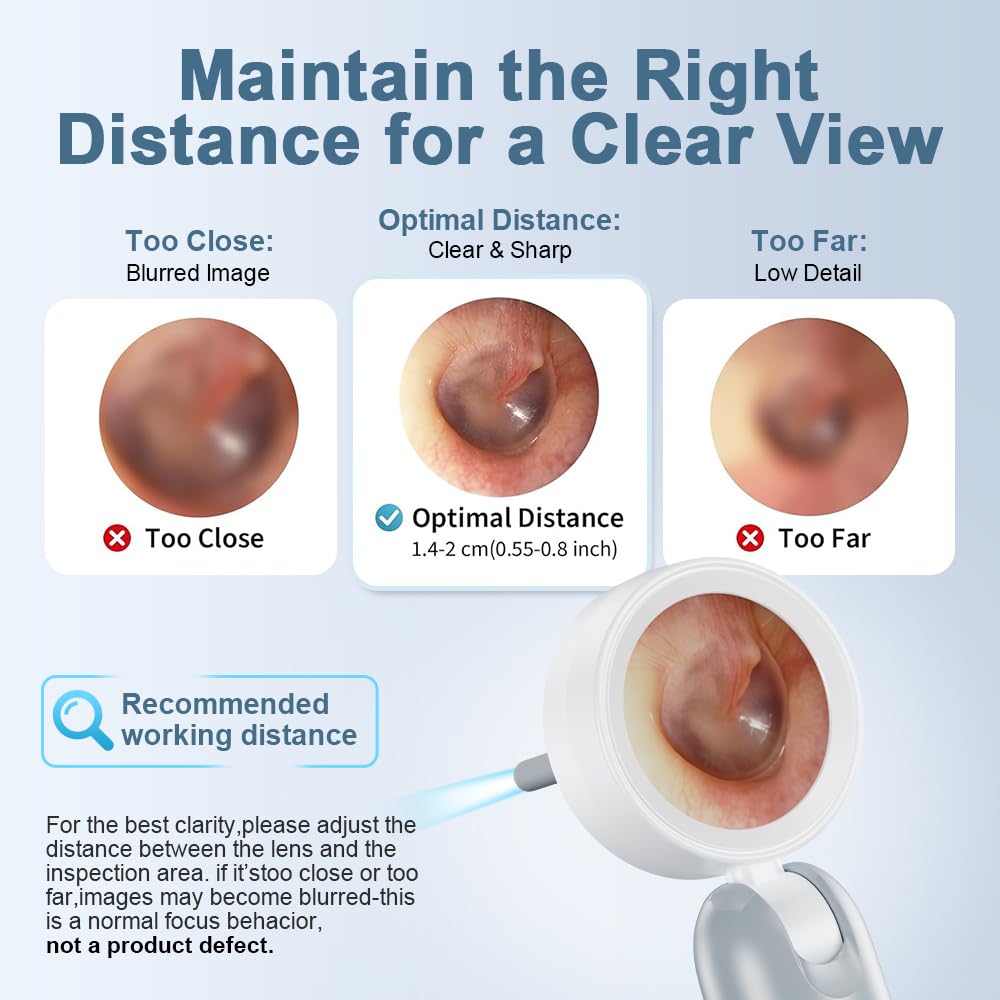 Optimal Viewing Distance for Clear Images: When used as an ear cleaner with camera or ear wax camera, best image clarity is achieved at a working distance of 1.4 to 2 cm; images may appear blurry if too close or too far, which is a normal focus characteristic of this ear camera otoscope, not a product defect