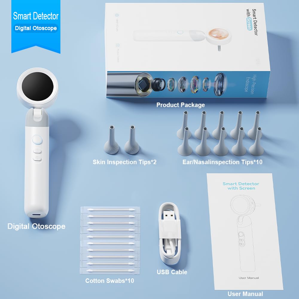 Complete Accessory Set for All Needs:This otoscope comes with two types of replaceable silicone covers: 10 small-hole covers for fine examination and 2 large-hole covers for larger areas such as skin. Other accessories include 10 cleaning swabs and a durable Type-C charging cable, making it a versatile set for ear, nose, mouth, and skin care.