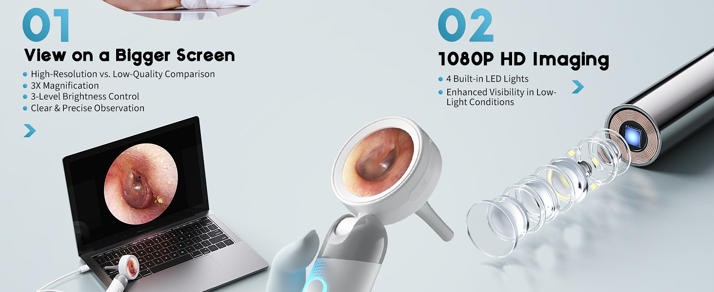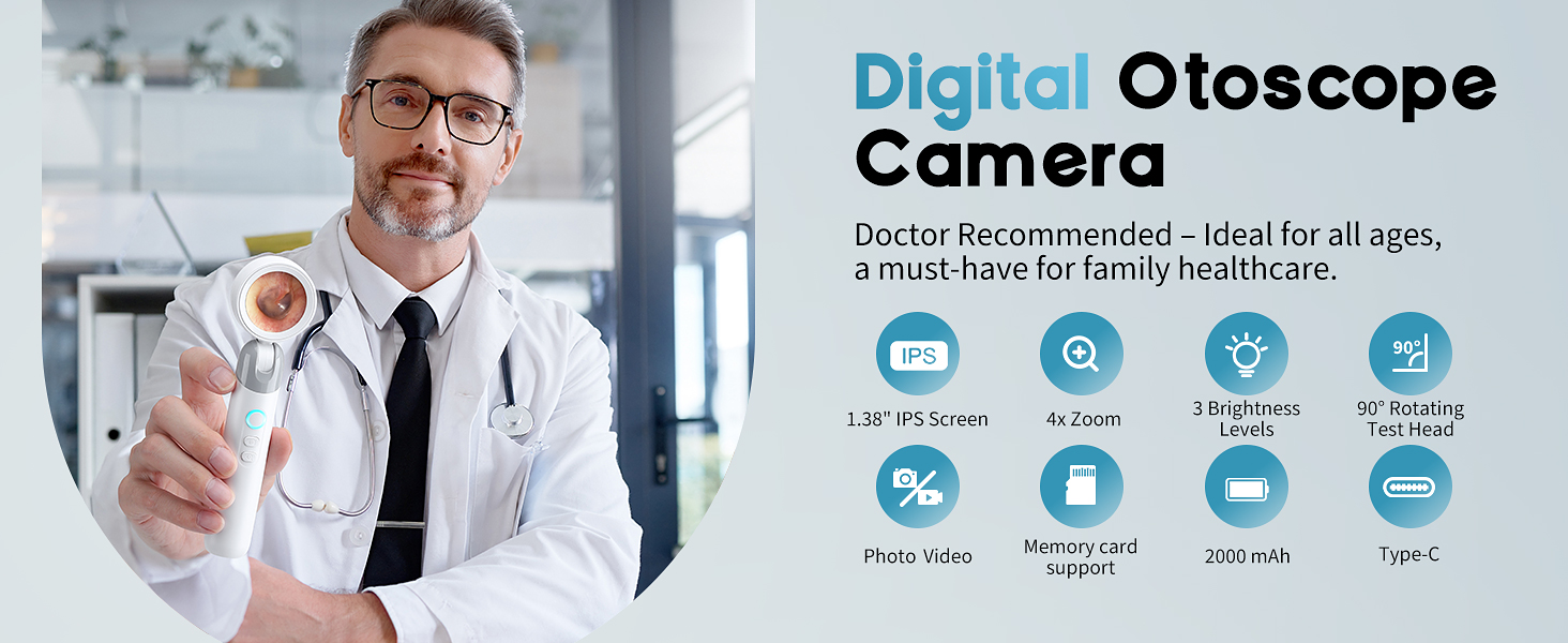 [Ultra-Clear Imaging | 1080P HD Camera] Equipped with a high-resolution 1080P HD camera and 4 built-in LED lights, this digital otoscope delivers crystal-clear images, allowing you to see every detail of the ear canal, nasal cavity, oral cavity, and skin. The 1.38” IPS LCD screen (240x240 resolution) ensures real-time viewing without the need for a smartphone. Certified by FCC, CE, ROHS, and UKCA, guaranteeing safe and professional-level at-home care.