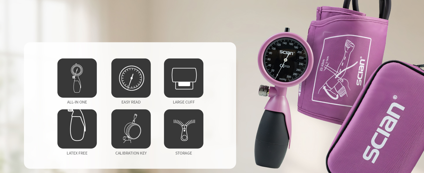 Simple And Intuitive: The stlylish black and purple red dial contrast color design allows users to read blood pressure measurements quickly and accurately. The large dial measures approximately 2.4 inches in diameter, ensuring numbers are easy to see and read.