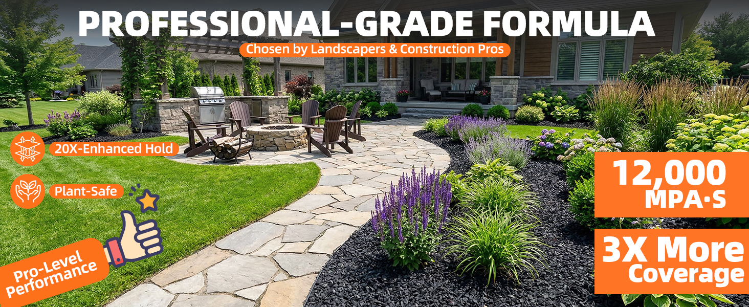 • التصاق فائق للمواد الثقيلة: يشكل نظام الترابط Super Stick تثبيتًا متينًا على كل من الطبقات السطحية والأعمق، مما يساعد على منع التحرك على الممرات وحواف الفناء وحدود الحديقة والمناطق المزخرفة - خاصة عندما تكون الرياح أو المطر أو حركة المرور الخفيفة شائعة.