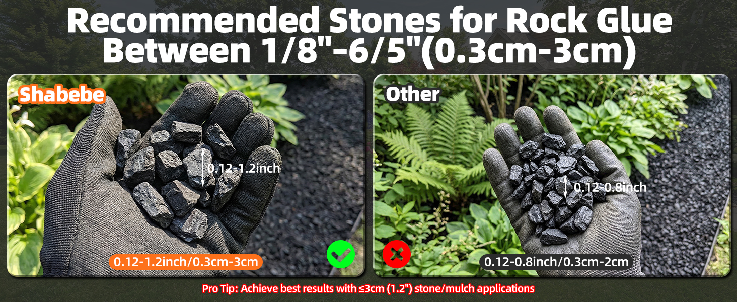 • طريقة أكثر ذكاءً وتوفيرًا للتكلفة للحفاظ على المناظر الطبيعية الخاصة بك: من خلال الصيانة التقليدية للفناء، يتناثر الحصى والنشارة بسهولة من الرياح والأمطار الغزيرة - مما يؤدي إلى الجرف المستمر وإعادة التعبئة وإزالة الأعشاب الضارة مما يكلف الوقت والجهد. مع Rock Glue، تظل الحجارة ثابتة في مكانها للحصول على مظهر نظيف وصلب حتى بعد الطقس القاسي، بينما تساعد أيضًا على تقليل نمو الأعشاب بين الفجوات - صيانة أقل، وعدد أقل من عمليات إعادة الاستخدام، وتوفير حقيقي في تكاليف الصيانة.