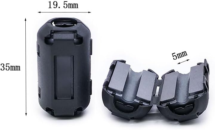 Package Content: 4 Pcs 5mm Ferrite Cable Clips; Material: Plastic; Outer Dimension: 35 mm x 19.5 mm