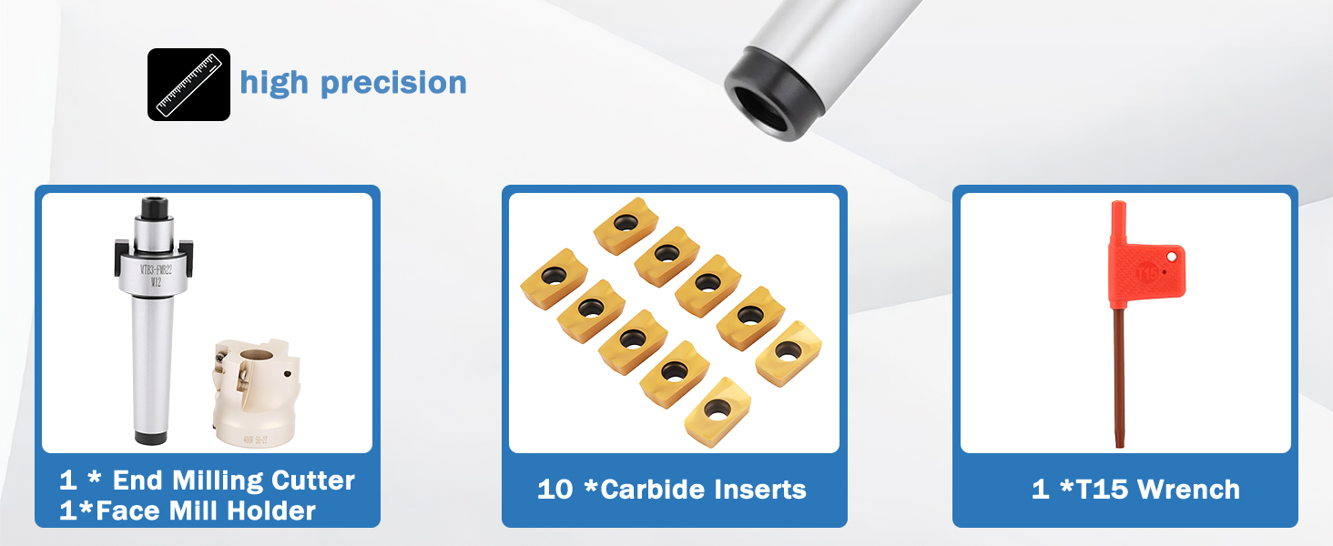 Multiple Insert Equipped Trait: This Face End Mill comes with 10pcs APMT1604 CNC carbide inserts, allowing for continuous machining without frequent replacement, enhancing efficiency in large-scale milling tasks.