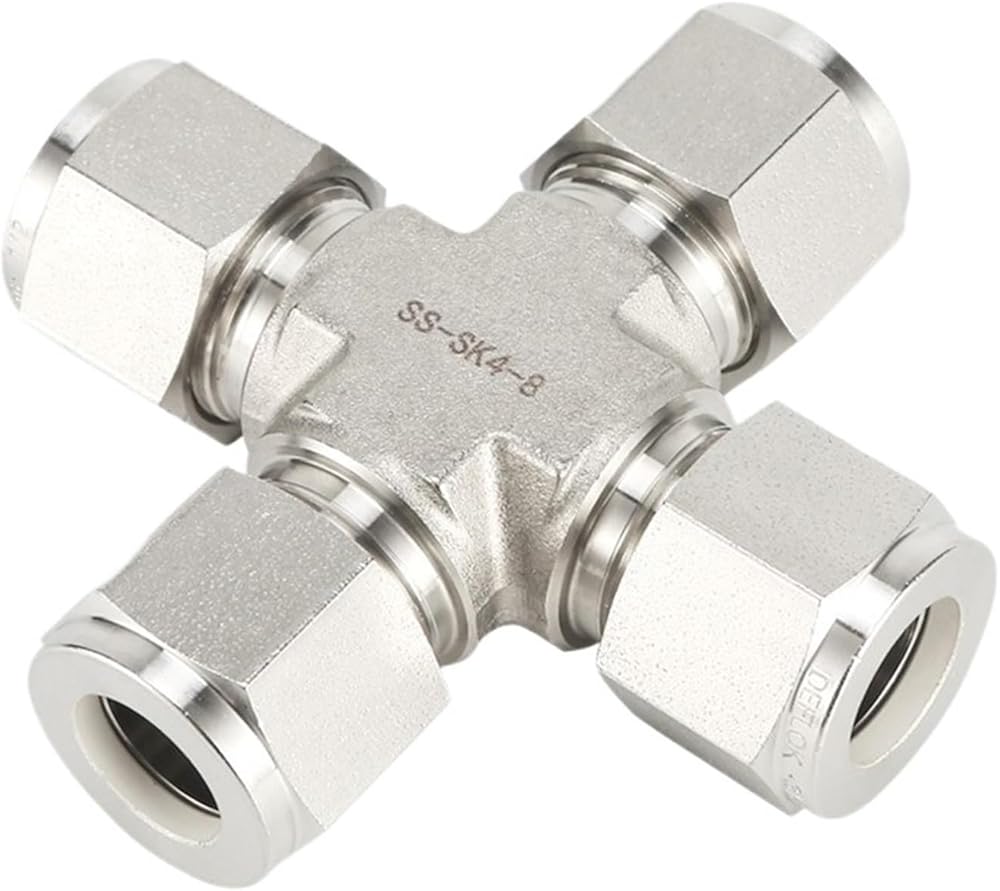 - 1pcs 316 Stainless Steel Union CROSS 4 WAY Double Ferrule Compression Connector 1/8 1/4 3/8 1/2 6mm Pipe Fitting Gas