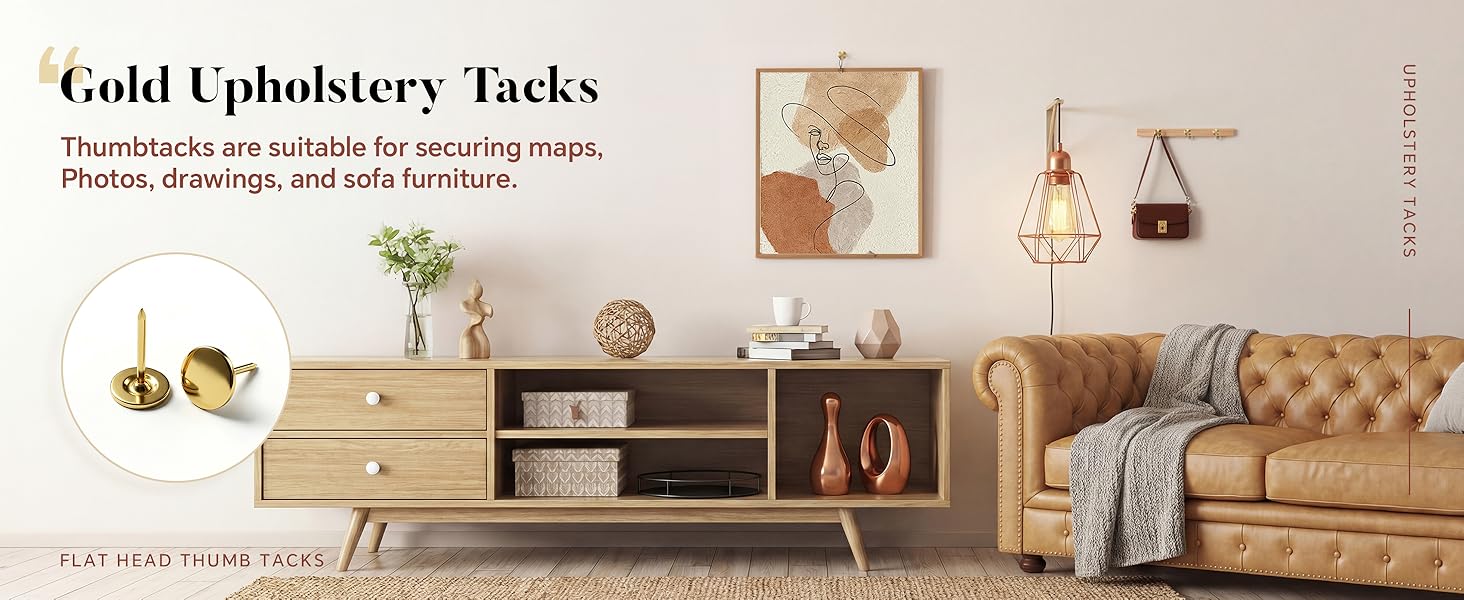 • [هل تحتاج إلى تثبيت قوي لديكوراتك؟] توفر هذه المسامير الذهبية شديدة التحمل قبضة موثوقة على الجدران وألواح الفلين والأقمشة - بحيث تظل صورك وملاحظاتك وديكوراتك في المكان الذي تضعها فيه تمامًا.