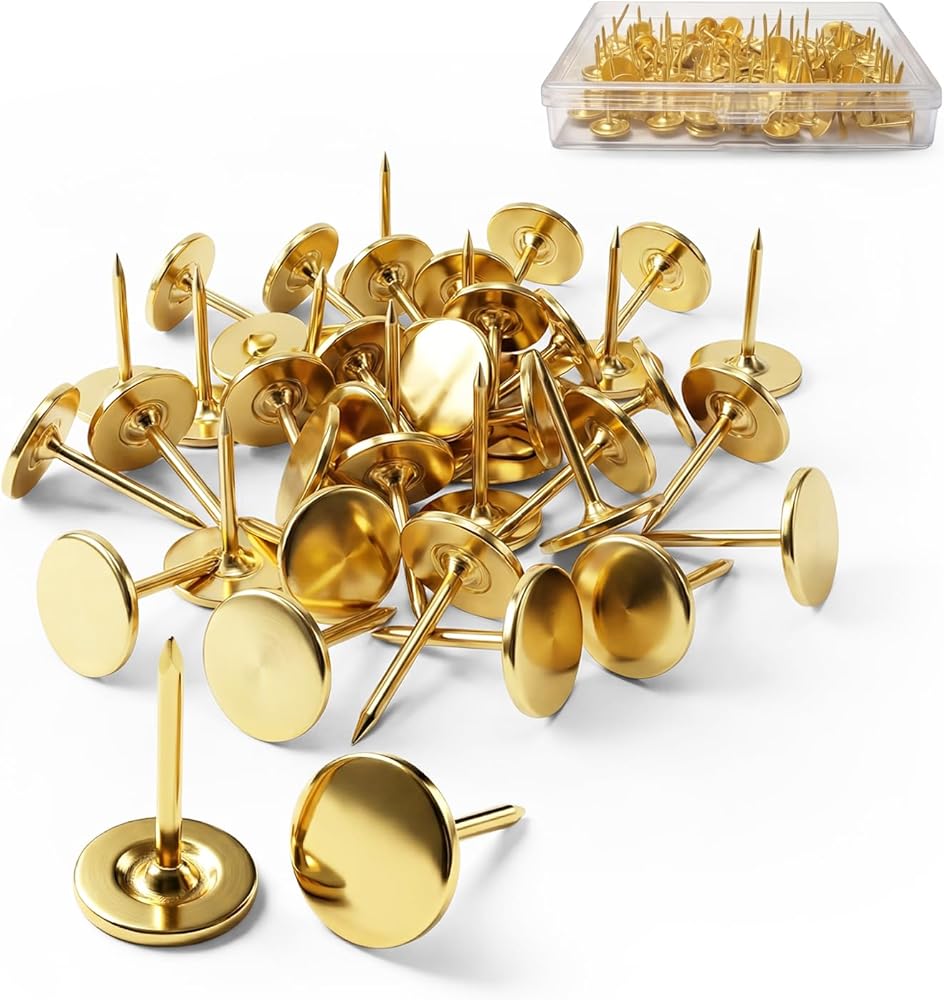 100 قطعة من مسامير الإبهام الذهبية شديدة التحمل، ومسامير بإبرة طويلة ودبابيس دفع ذهبية لديكور الحائط والمنزل، وأظافر السجاد، وTachuelas Para Pared