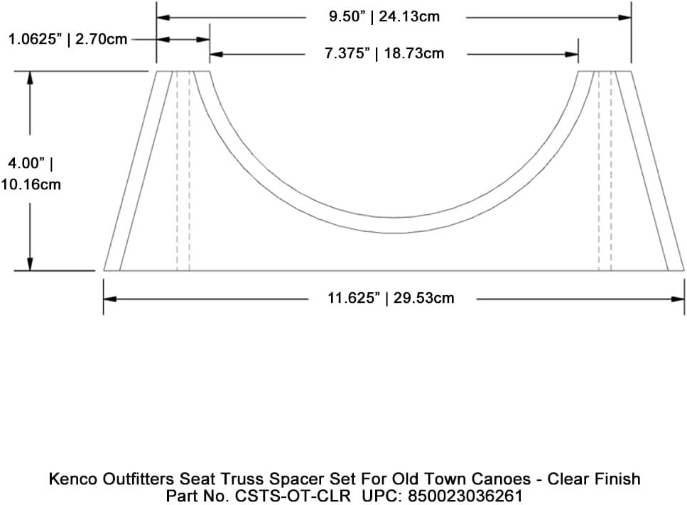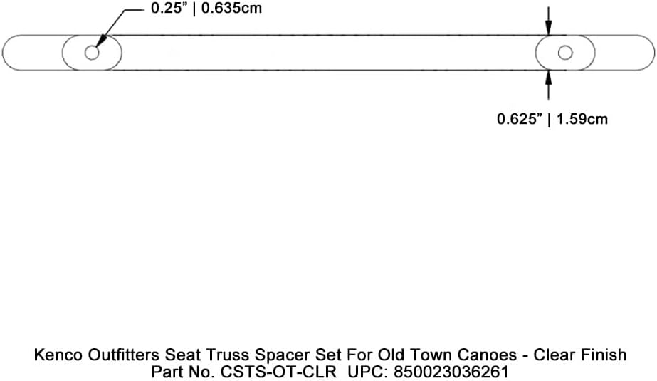 The Kenco Outfitters solid ash canoe seat truss spacer set for Old Town canoes provides greater support than traditional 4-piece dowel spacers. These canoe seat truss spacers are sold in pairs, measure 4" tall with 8.75" on-center hole spacing and have a clear polyurethane finish. Each canoe seat truss spacer set is handcrafted in the United States.