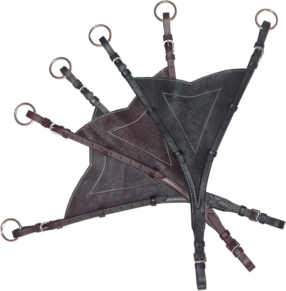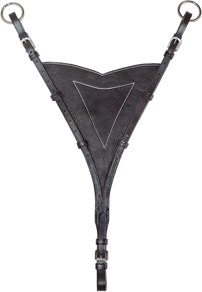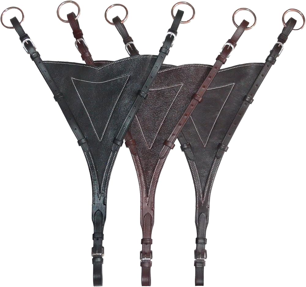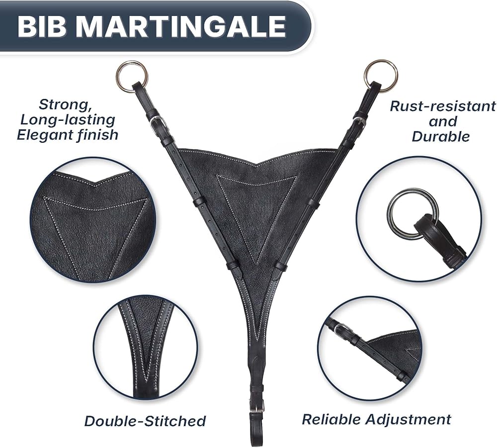 Bib Design: The soft leather bib keeps the martingale forks together and keeps the horse's mouth from catching straps.