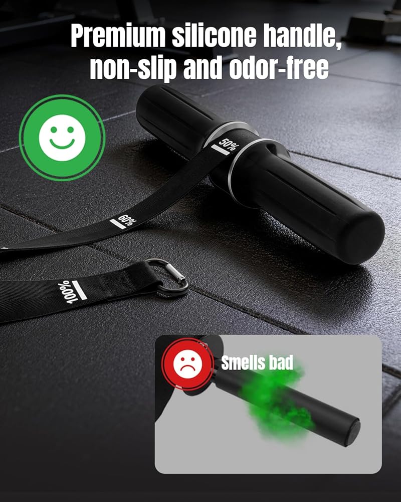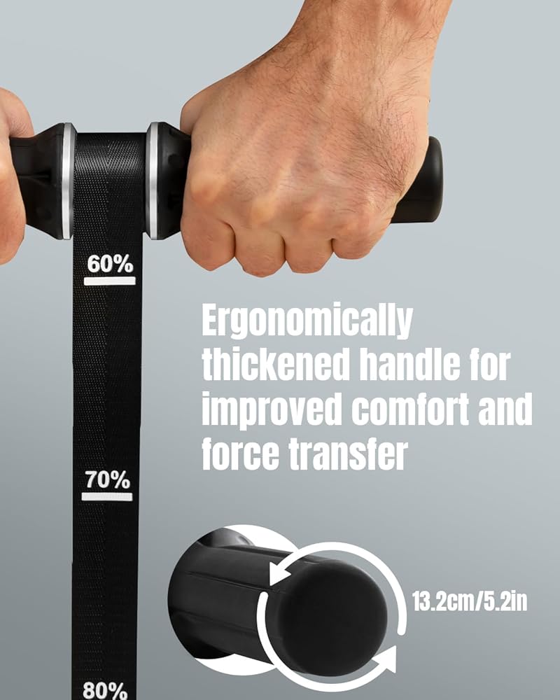 قبضة سيليكون أكثر سمكًا مع راحة مخططة مضادة للانزلاق: يتميز مقوي الساعد هذا بمقبض سيليكون ممتاز سميك للغاية أكبر بشكل ملحوظ من المقابض القياسية. يضمن الملمس المخطط غير القابل للانزلاق تثبيتًا آمنًا حتى مع الأيدي المتعرقة. سيليكون ناعم وصديق للبشرة يتوافق بشكل طبيعي مع راحة يدك، مما يساعد على تقليل مسامير القدم وتعب اليد أثناء التدريب الطويل - مما يجعل كل لفة أكثر سلاسة وراحة وفعالية.