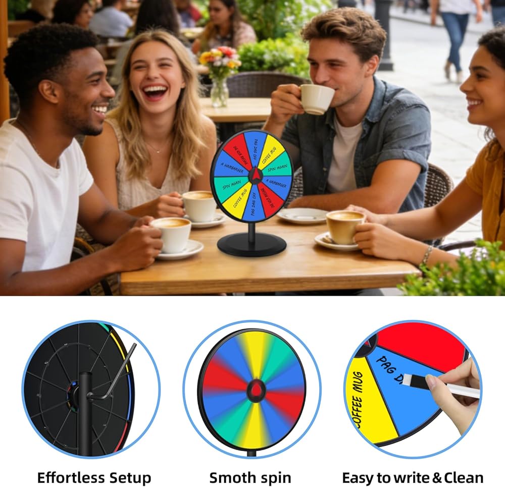 • Versatile Fun with 10 Editable Slots: The wheel features 10 customizable prize slots, making it the ultimate attention-grabber. Ideal for a wide array of scenarios, including trade shows, business carnivals, classroom activities, holiday parties, and fundraisers, to maximize engagement and promotion.