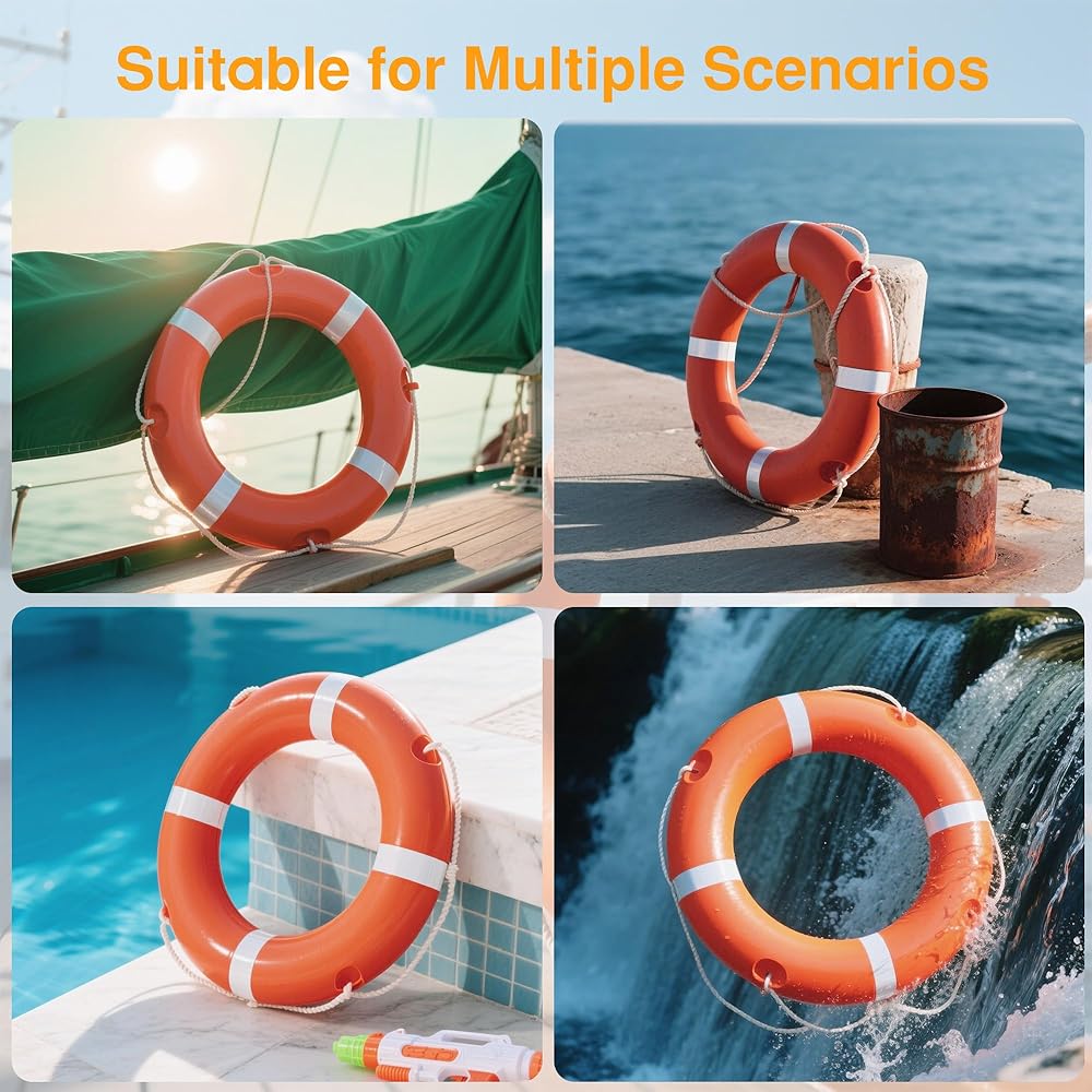 【Wide Marine & Pool Applications】 This versatile life ring buoy is suitable for marine rescue, yacht and dockside safety, swimming pools, fishing, rafting, surfing, disaster relief, and more. A professional throwable flotation device that ensures safety across boats, pools, and open waters.