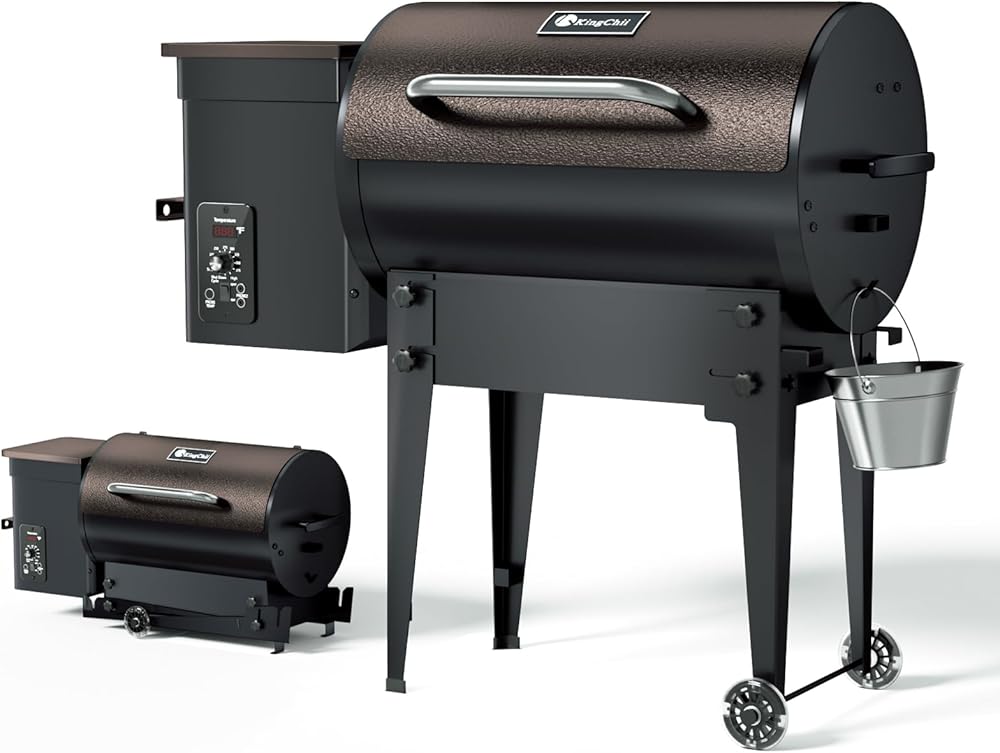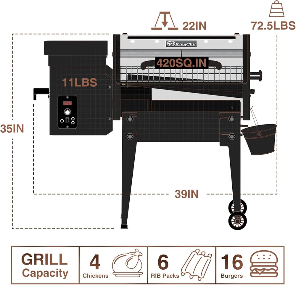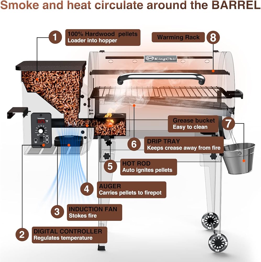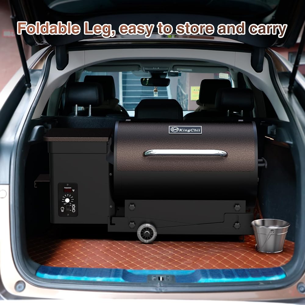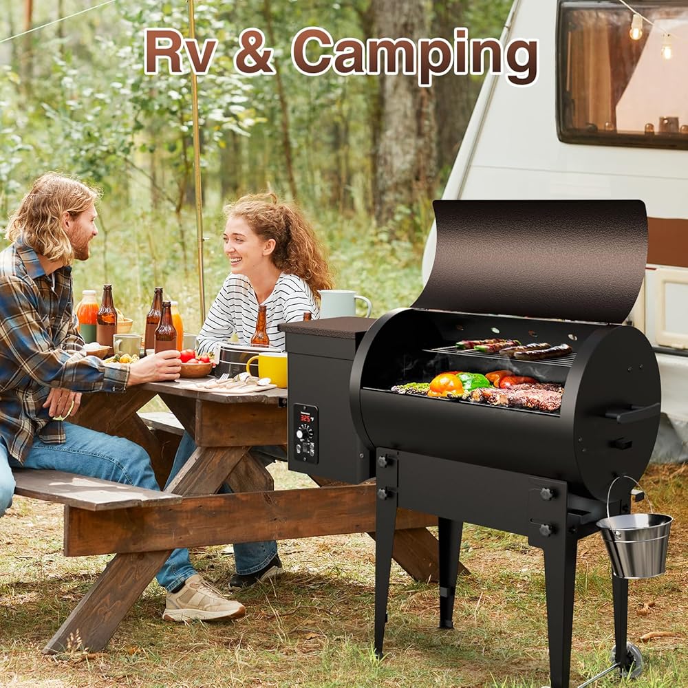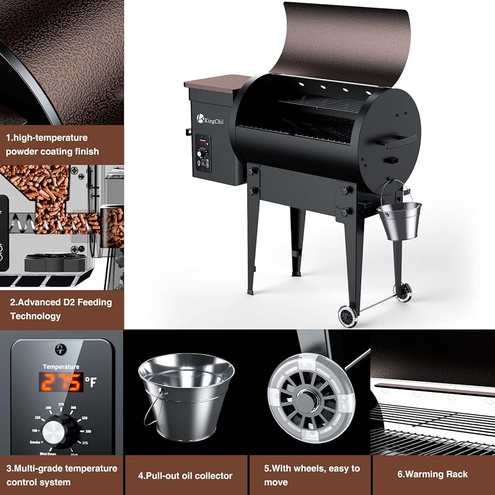 【Wood Pellet Grill】 Gives your grilled food a wood-smoked flavor with a mellow, delicious taste.With D2 feeding technology and liftable straight hopper, it not only saves space, but also can store more wood pellets and ensure the burning time.