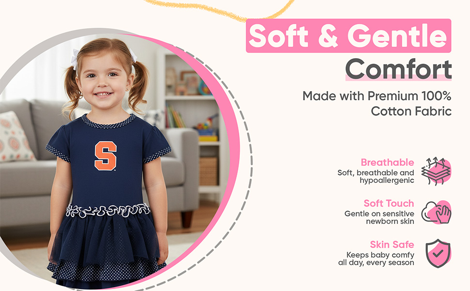 ناعم ورائع: فستان تكساس لونجهورنز للفتيات الصغيرات مصنوع من القطن عالي الجودة ليمنحك الأفضل لطفلك. زي مطبوع بنمط نقاط البولكا الجذاب مع تنورة توتو محبوكة بنعومة عند خط الخصر لتعزيز جاذبيته