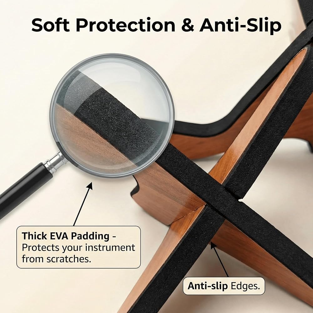 Ultra-Protective 2mm Thick EVA Padding. Unlike standard stands with thin foam, our holder features 2mm high-density EVA cushioning on all contact points. This ensures your instrument's finish is 100% safe from scratches and provides superior shock absorption.