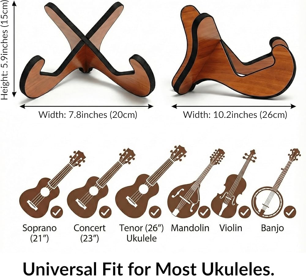 One Stand for Multiple Instruments. Engineered for a perfect fit, this X-frame stand accommodates Soprano, Concert, Tenor, and Baritone Ukuleles, as well as Violins, Mandolins, Banjos, and Pipas. It is the ideal all-in-one solution for multi-instrumentalists.