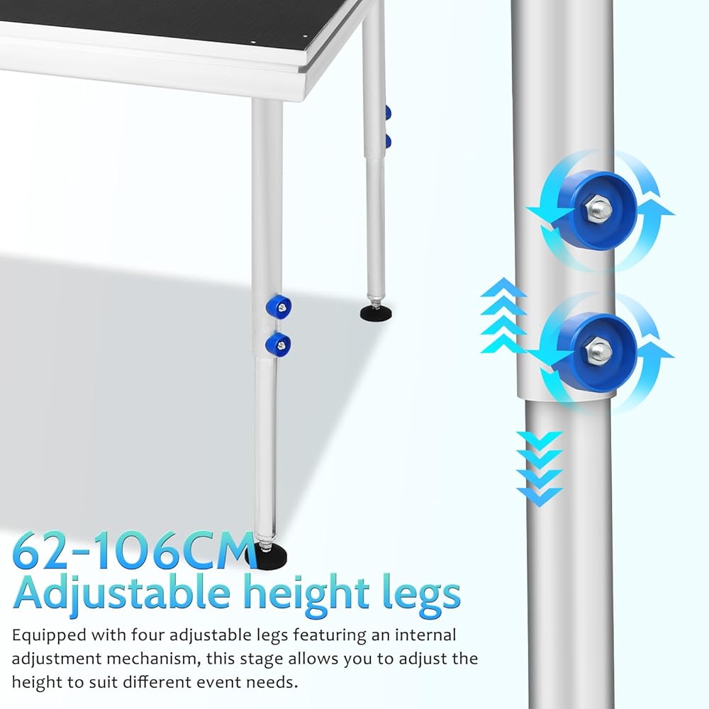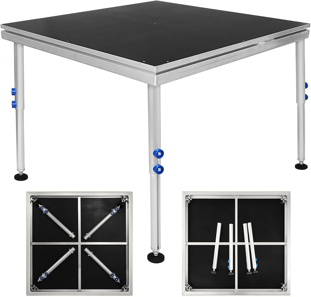 منصة مسرح محمولة، منصة ارتفاع قابلة للتعديل 4 × 4 أقدام مع أرجل قابلة للطي (24 بوصة - 40 بوصة) - أقصى سعة 1700 رطل، حامل دي جي سطح مضاد للانزلاق، مرحلة نظام معياري من الألومنيوم للأحداث والأداء