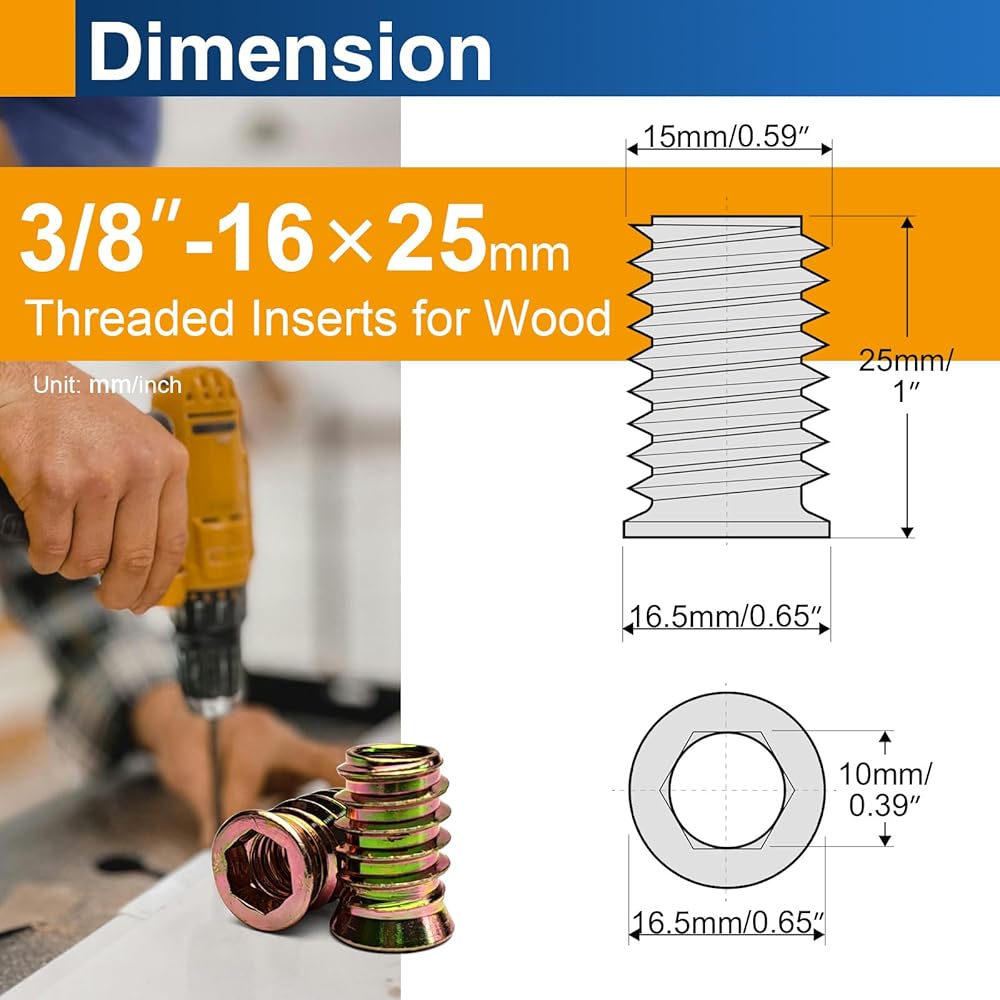 - تفاصيل المقاس: الخيط الداخلي: 3/8"-16؛ الطول: 25 مم. عمق الثقب الموصى به: ≥27 مم للجلوس المناسب.