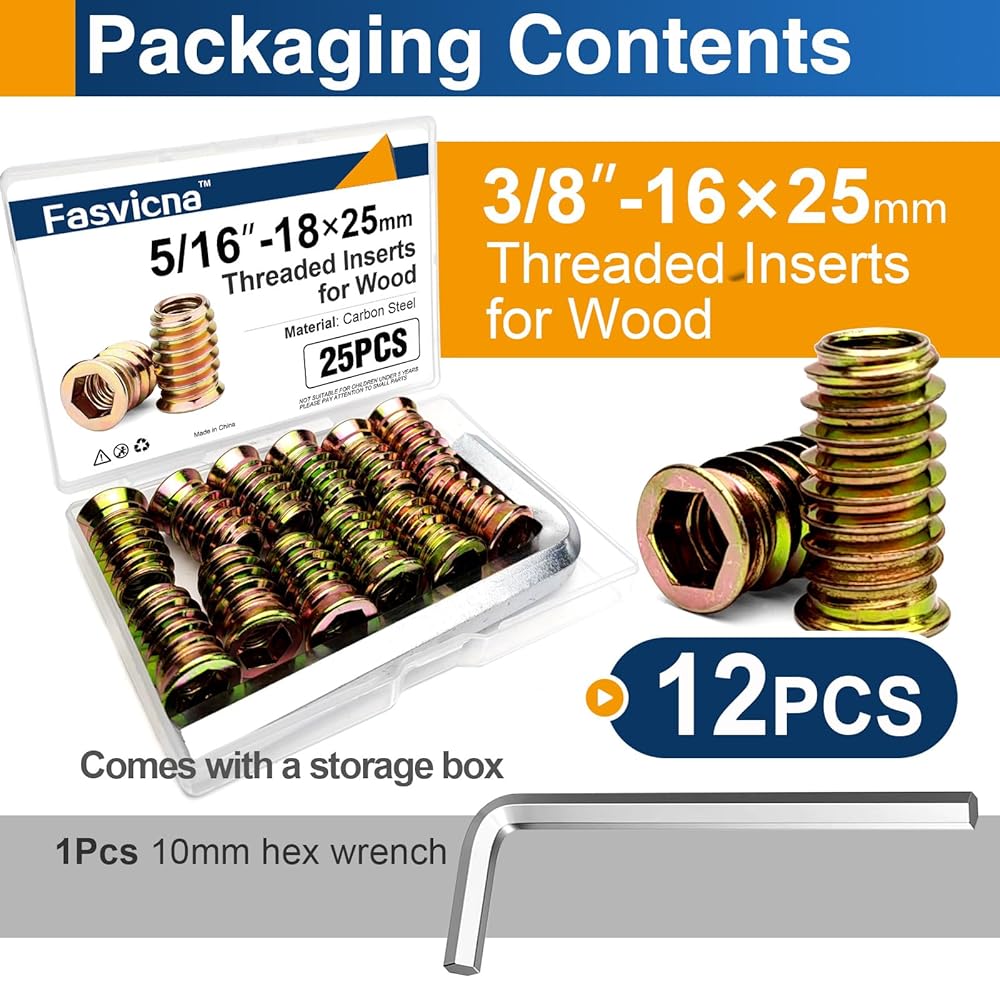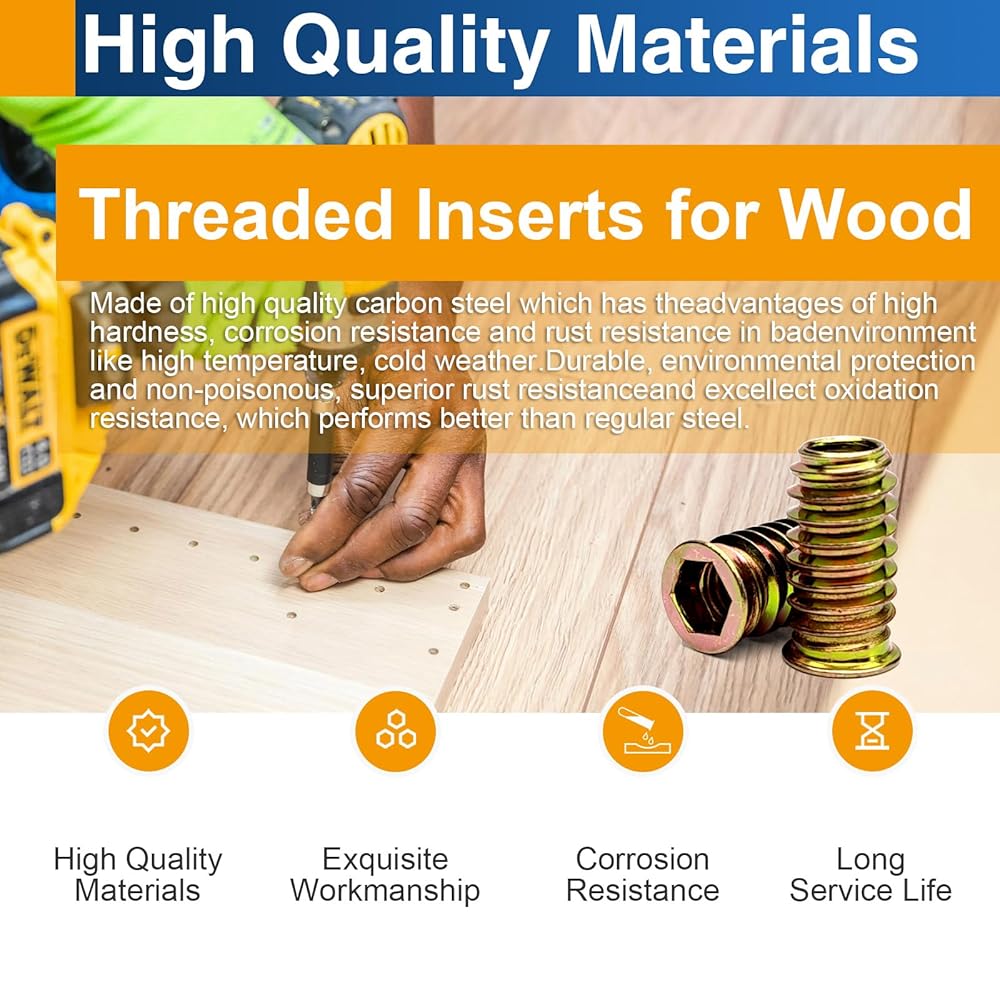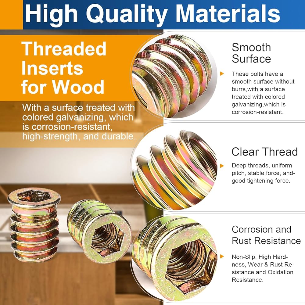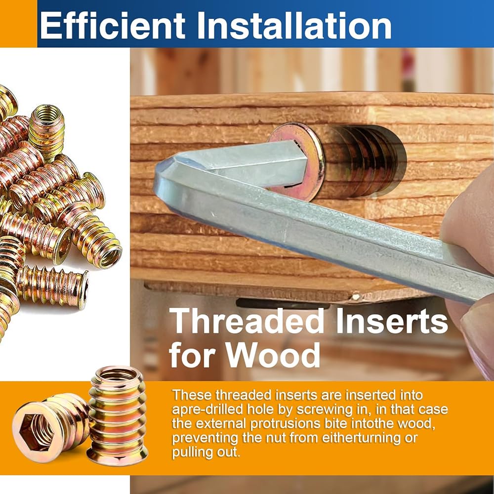 1/4"-20 x 20mm Threaded Inserts for Wood, Hex Drive Insert Nuts for Furniture Repair, 28 Pack
