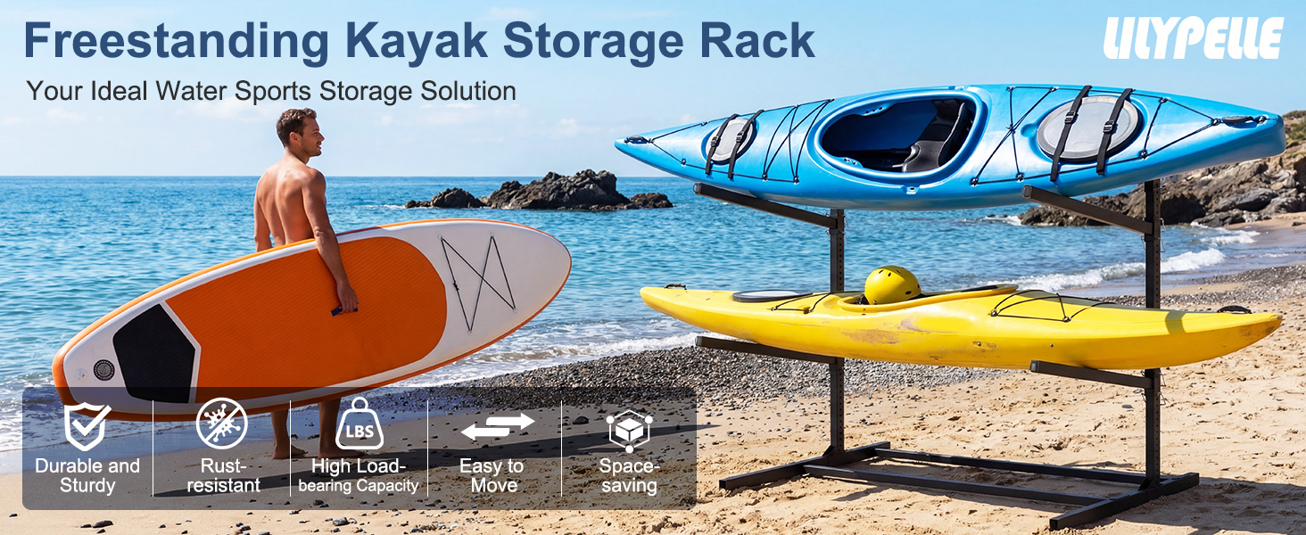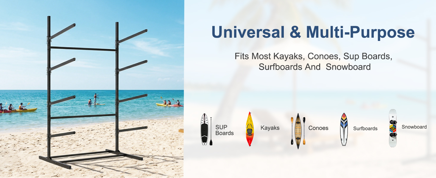 • 【تخزين فعال موفر للمساحة】 قم بتحسين استخدام المرآب أو السقيفة أو المرفأ أو مساحة الرصيف مع حل التخزين العملي هذا. احتفظ بقوارب الكاياك الخاصة بك مخزنة بعيدًا عن الأرض بترتيب متدرج، مما يقلل الفوضى بشكل فعال، ويزيد من مساحة التخزين، ويجعل الوصول إلى معداتك وتنظيمها سهلاً.