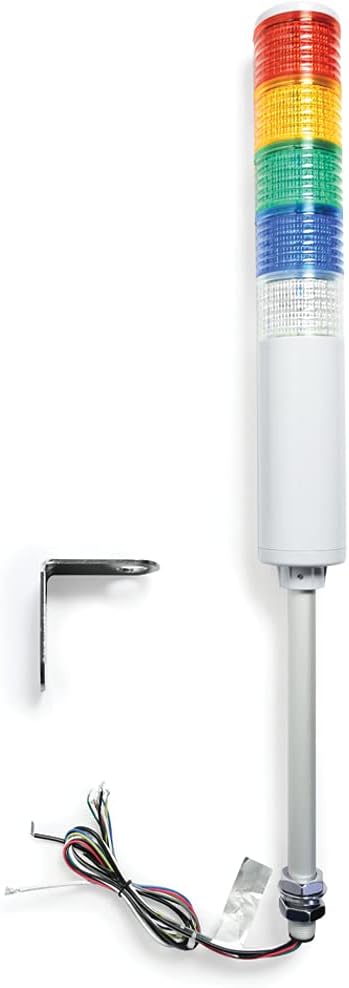 Signaworks LED 5 Stack Tower Light 120 VAC، ثابت ووامض، أحمر/كهرماني/أخضر/أزرق/شفاف - أندون، عمود ملولب 10 بوصة، صواميل ودعامة زاوية قائمة فقط - (لا يتضمن سلك طاقة أو أدوات تحكم)