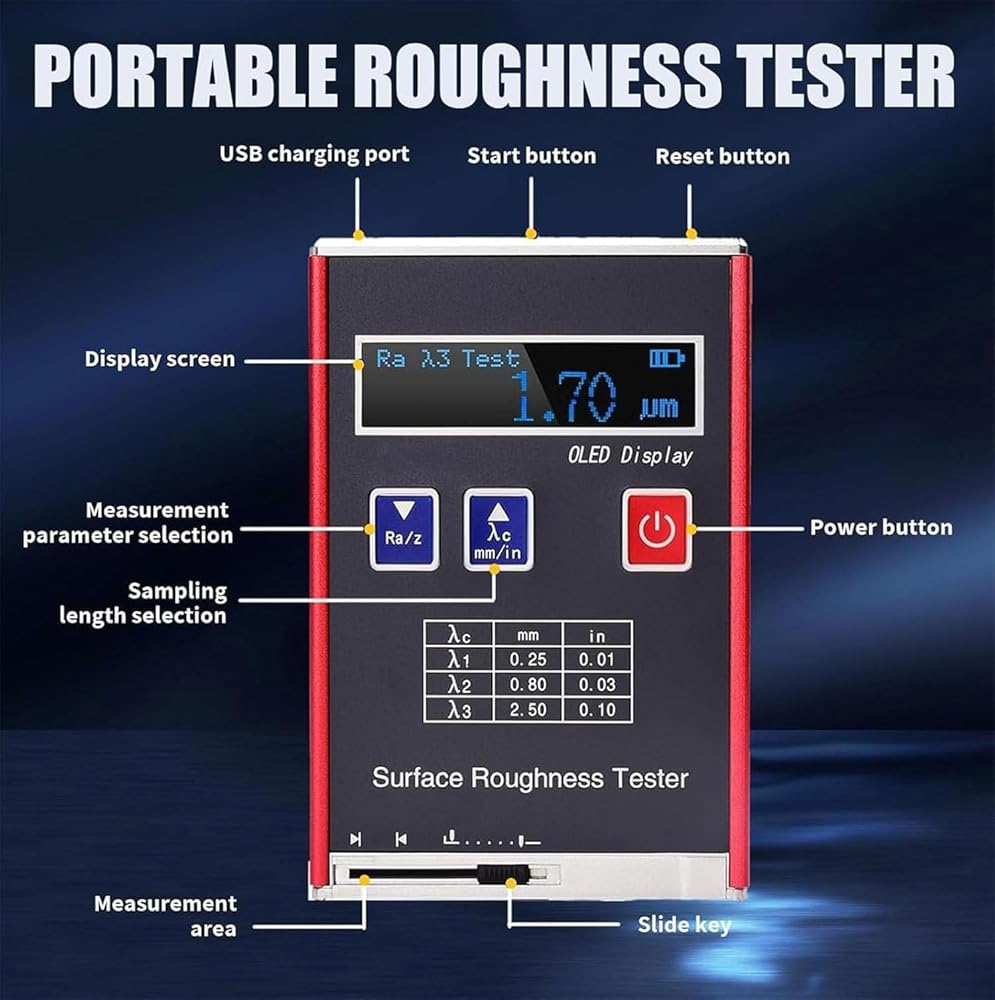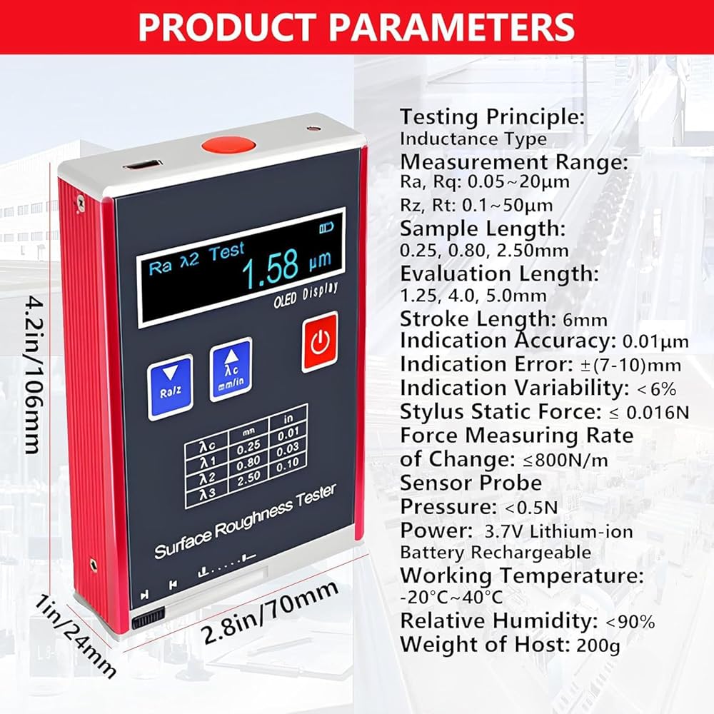【Roughness Tester】This versatile Roughness Gauge is suitable for various, including external, flat, conical, and grooved, accommodating even those larger than 80 x 30mm, it is a versatile choice for professionals.
