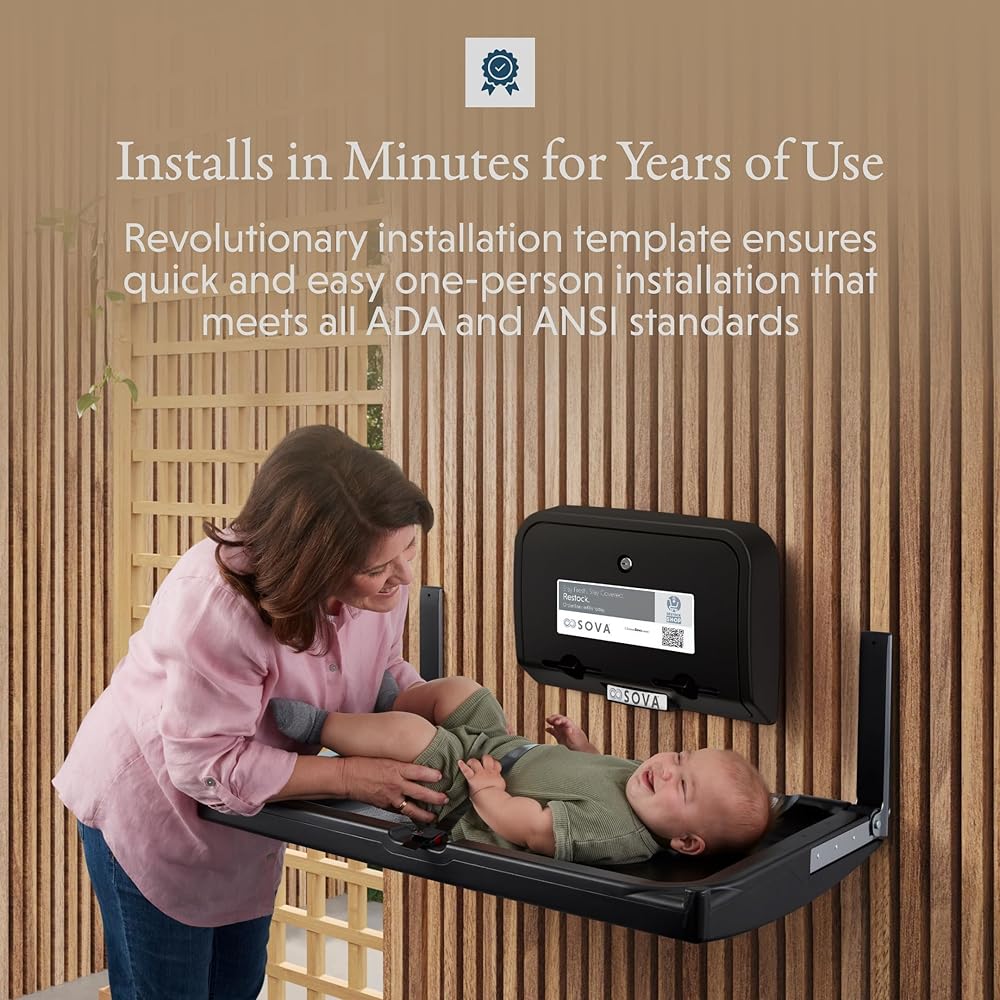 Revolutionary installation template ensures baby changing station height is ADA compliant and allows for easy one person installation