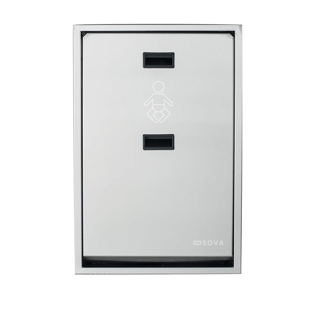 Setting a new standard in luxury and performance, the Sova Summit Vertical changing station is the only fully stainless steel model on the market. Crafted entirely from brushed 304 stainless steel, Summit combines lasting strength with a refined architectural presence. A replaceable high-gloss ABS tray adds visual polish, while pneumatic gas springs ensure smooth, effortless open and close. The one-handed safety belt, made from an easy-to-sanitize composite material, provides both convenience and peace of mind. With its clean lines and sleek, vertical silhouette, Sova's Summit Vertical changing station offers a slimmer profile, perfect for compact spaces. Designed for high-end environments, Summit is available in surface or recessed mount.