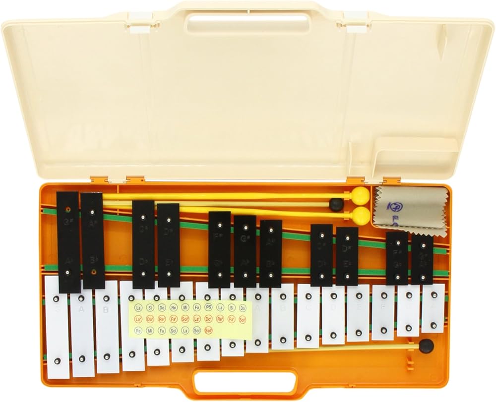 Angel range of Glockenspiels, Xylophones and Metallophones represents the ideal means of offering a real starting point for young children to learn about the fundamentals of making music, both individually and in groups. By using these robust, well-manufactured instruments, children will discover that music is creative, fun and exciting, an experience which can also be shared and enjoyed with classmates. Plus, in addition to learning the basics of musical harmony, all the instruments in the Angel range being non-electrical, allow children to develop their fledgling musical skills in complete safety! Specifications: Scale: G2 - A4 Notes: 27 notes Length: 46cm Included: 4 beaters Weight: 2.5kg