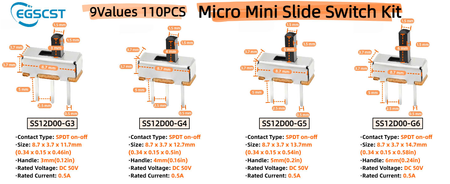 【حل تخزين احترافي】 جميع مفاتيح الشريحة الصغيرة SPDT الصغيرة المكونة من 110 قطعة و9 قيم معبأة في صناديق بلاستيكية مقاومة للضغط - يسهل العثور عليها واستخدامها بسرعة.