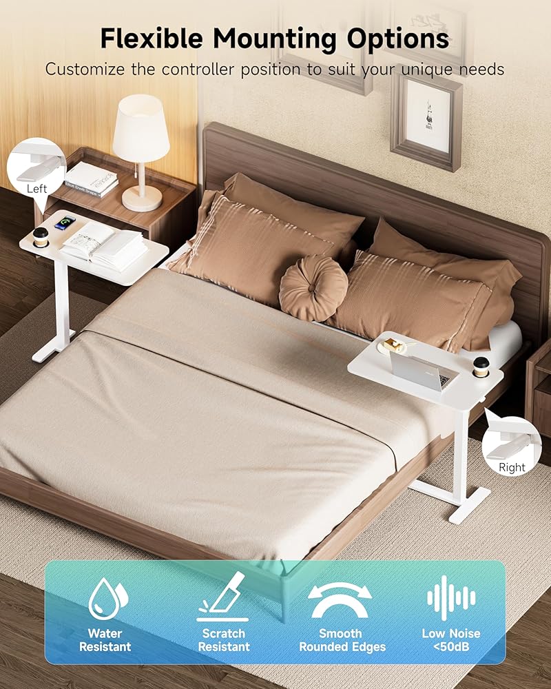 【عجلات دوارة مخفية】تم تجهيز طاولة المكتب المحمول فوق السرير من BIZUM بـ 4 عجلات مخفية تنزلق بسلاسة وتدور 360 درجة. تعمل بسهولة على الأرضيات الصلبة والبلاط ولكن لا يُنصح باستخدامها على السجاد. تعمل العجلات بهدوء، وتنتج أقل من 50 ديسيبل من الضوضاء، لذلك يمكنك تحريك المكتب الصغير بحرية في غرفة نومك دون إزعاج الآخرين. مع ارتفاع قاعدة القدم 1.38 سم، يمكن وضعها بسهولة تحت معظم الأسرّة أو الأثاث، مما يوازن بين الحركة وكفاءة المساحة.