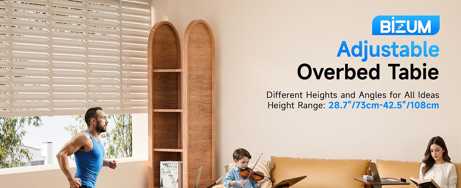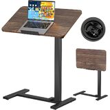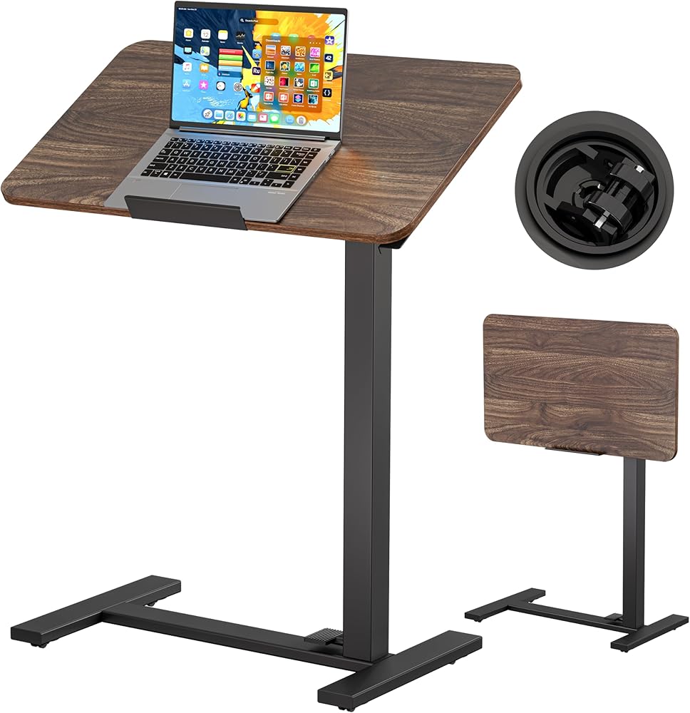 BIZUM مكتب كمبيوتر محمول قائم متنقل يعمل بالهواء المضغوط مع عجلات 180 درجة إمالة أعلى سرير المستشفى طاولة محمولة عربة دوارة قابلة للطي طاولة بجانب السرير للاستخدام في المستشفى والمنزل، خشب الجوز