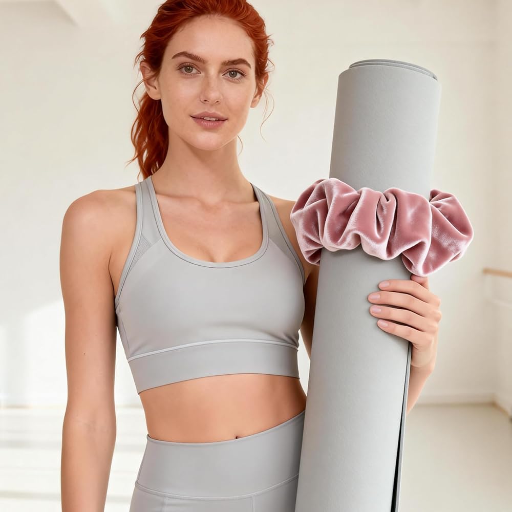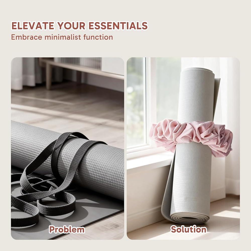 Innovative Yoga Mat Slap Band Design: This versatile yoga scrunchie doubles as a stylish mat scrunchie and practical for yoga mats, perfectly combining fashion and function for easy carrying
