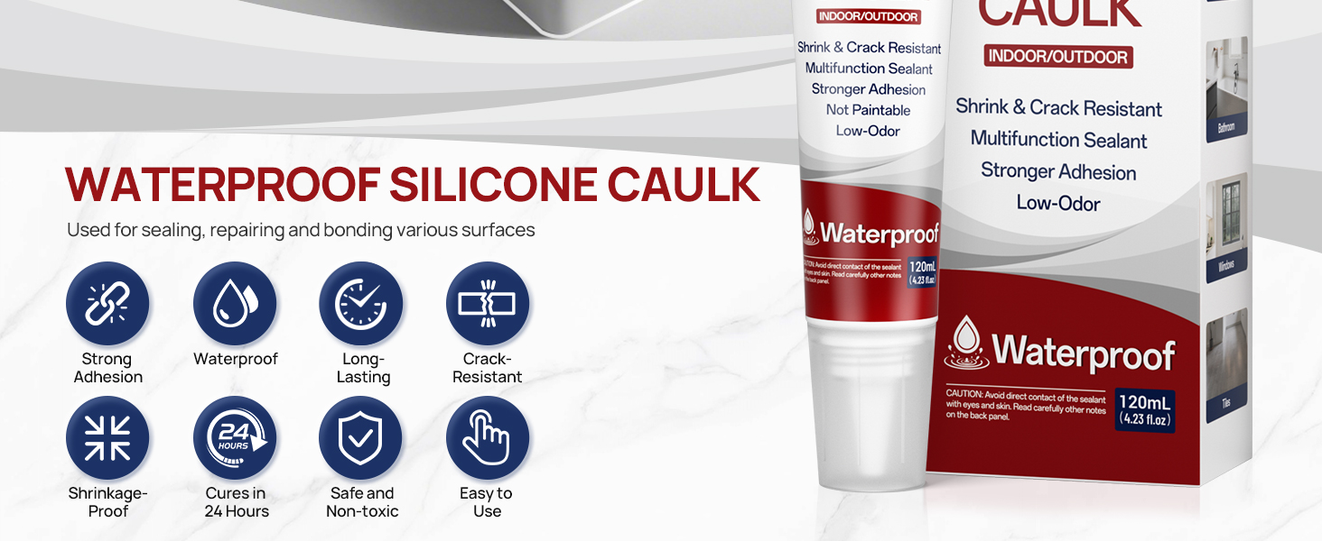 Shrink-Proof & Crack-Proof: This caulk is suitable for both indoor and outdoor use and can withstand extreme environmental conditions. Specifically designed for showers, this caulk not only has waterproof properties but also won't shrink, crack, or peel off even after prolonged use.