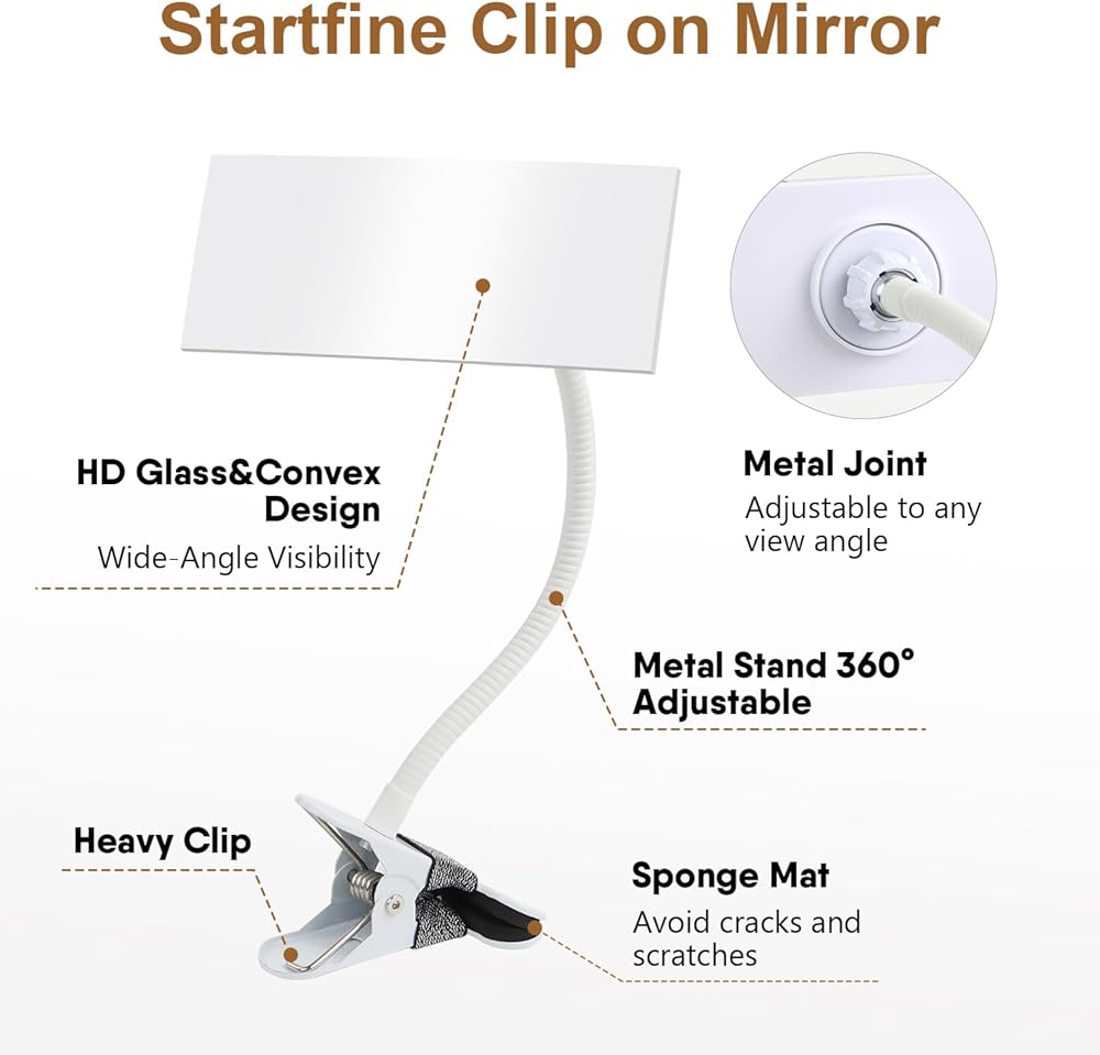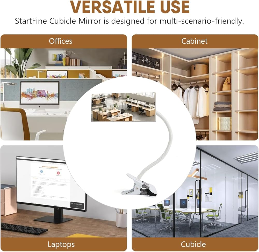 🔍 استخدام متعدد الاستخدامات: تم تصميم مرآة الأمان StartFine Clip On Security لتناسب السيناريوهات المتعددة. مثالية للمكاتب، والخزانة، والمقصورة، وأجهزة الكمبيوتر الشخصية أو ربطها بأشياء أخرى من أجل السلامة الشخصية.