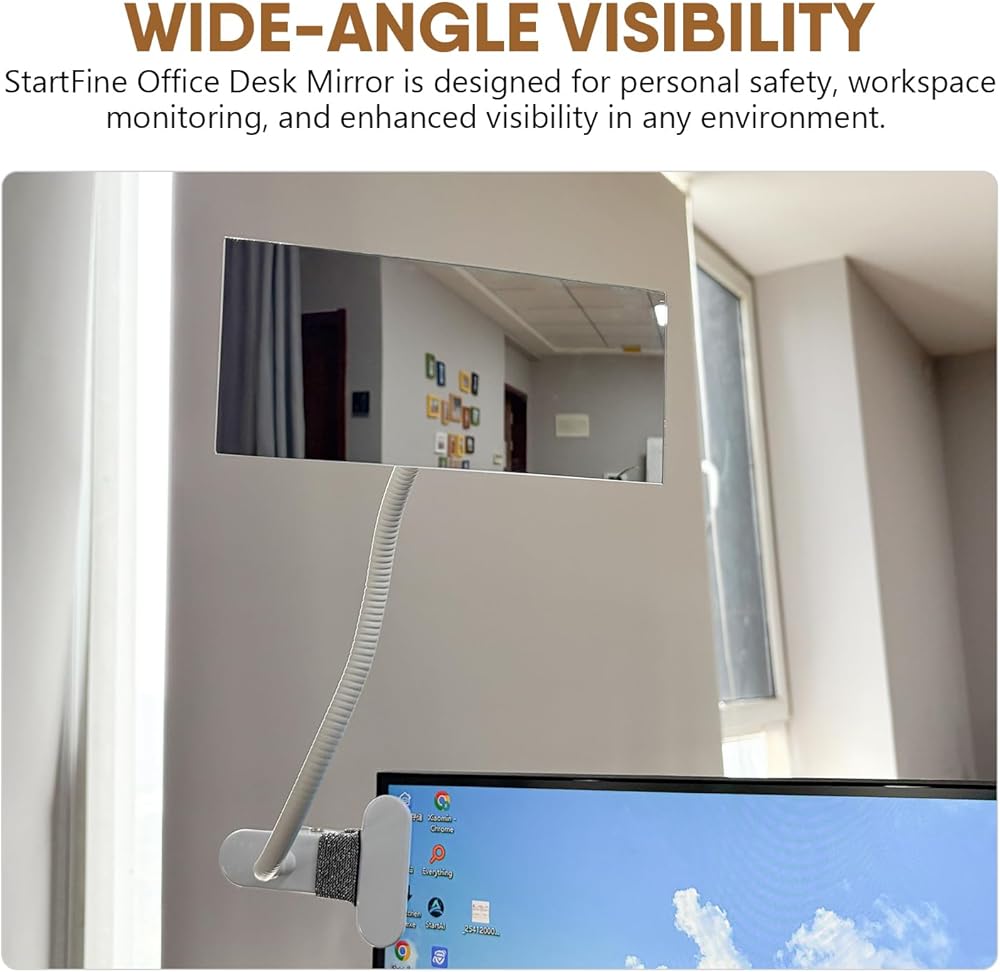 🔍 رؤية واسعة الزاوية: 6.69 بوصة × 2.95 بوصة، زجاج حقيقي عالي الدقة وبدون إطار، تصميم محدب مستطيل يزيل البقع العمياء. تم تصميم مرآة مكتب StartFine Office من أجل السلامة الشخصية ومراقبة مساحة العمل وتحسين الرؤية في أي بيئة. يمكن للمرآة ذات المشبك رؤية نفسك أو محيطك الخلفي من أجل السلامة والأمان، كمرآة كمبيوتر، أو مرآة مكعبة، أو شاشات رؤية خلفية للمكتب، أو مرآة لعربة الأطفال.