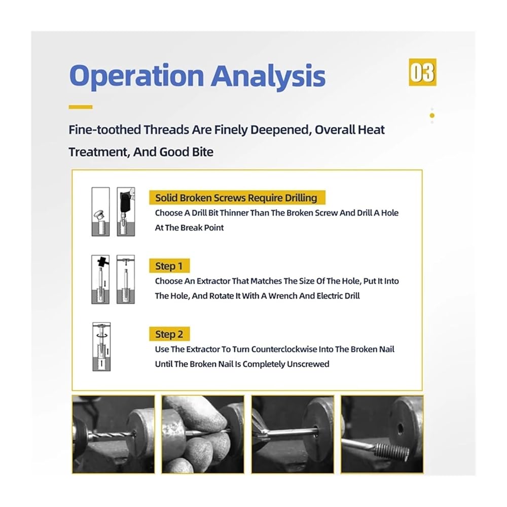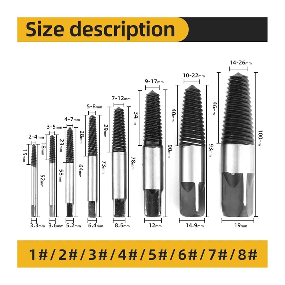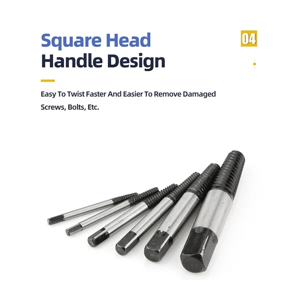 The alloy steel material is used for removing or pulling out damaged screws and broken bolts and can be stable and durable.