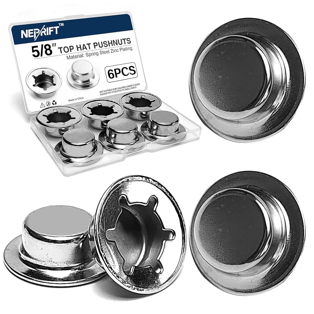 The Pushnut 5/8-inch Axle Cap Set is engineered as a quick, reliable replacement for split pins and retaining rings. Each cap is precision-stamped from spring-tempered steel, then finished with ASTM-grade mechanical zinc plating to fight rust in warehouse, yard, or roadside conditions. Radial teeth flex over a 0.625 in. axle and lock tight, forming a vibration-proof hold without threads or tools. At only 0.47 in. tall, the low-profile dome protects cargo and operators while keeping debris out of wheel hubs. Ideal for fleet maintenance on delivery dollies, lawn trailers, and utility carts—this six-pack keeps mission-critical spares ready for instant repairs.