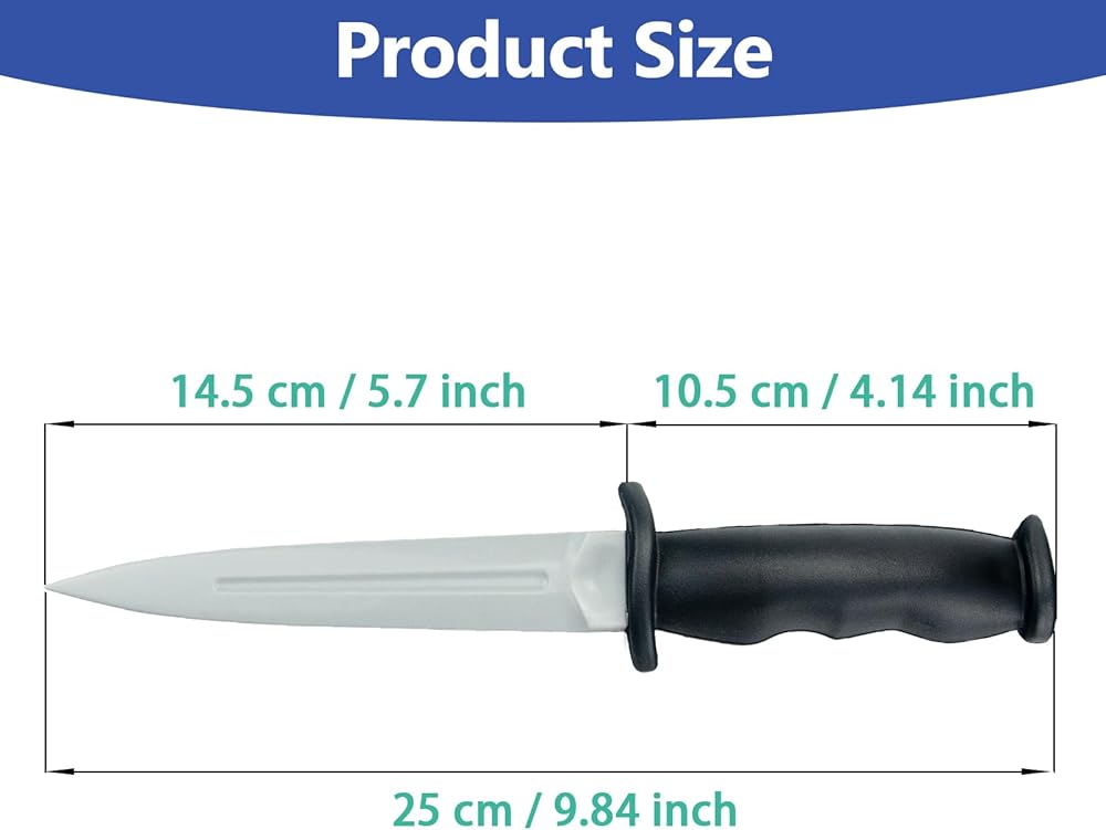 This 9.8-inch flexible rubber dagger is designed for martial artists, cosplayers, and tactical trainers who demand both safety and realism. Made from high-density soft rubber, it replicates the look of a real combat knife while ensuring zero injury risk – perfect for dynamic fight rehearsals, costume parties, or theatrical performances.