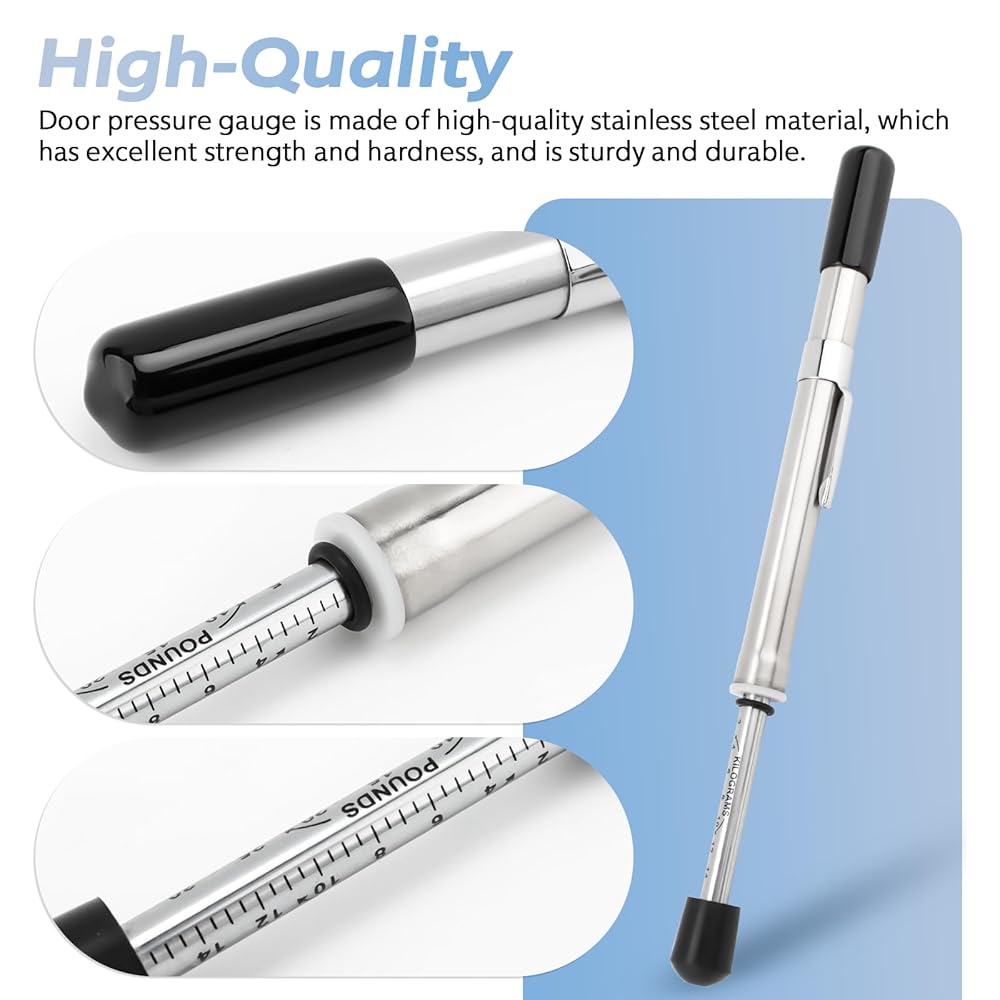 تجربة محسنة: تتضمن أداة اختبار ضغط الباب 1 × أداة إصلاح مقياس ضغط الباب و1 × أنبوب حماية بلاستيكي. يمكن أن تلبي أجزاء قياس ضغط الباب احتياجات الاستخدام اليومية، مما يوفر المال والاستمتاع بتجربة استخدام أكثر كفاءة وموثوقية.