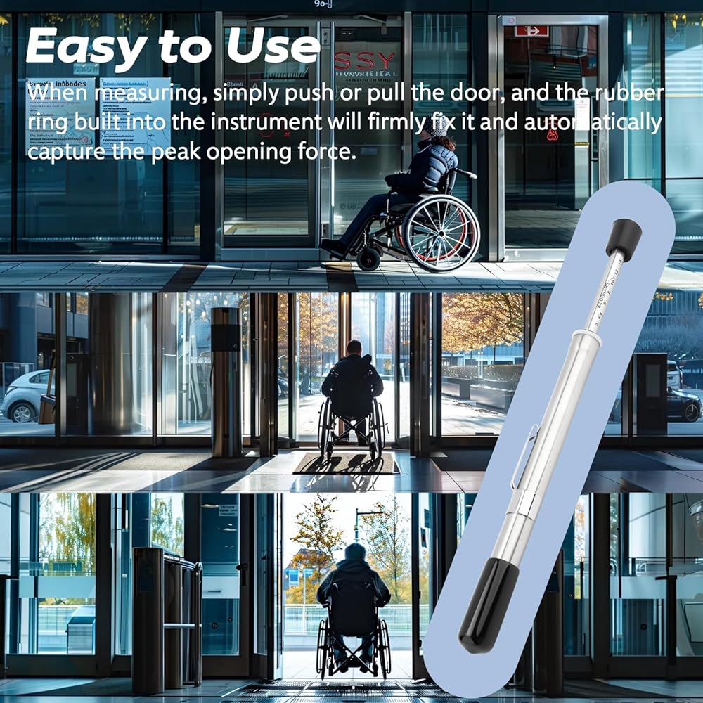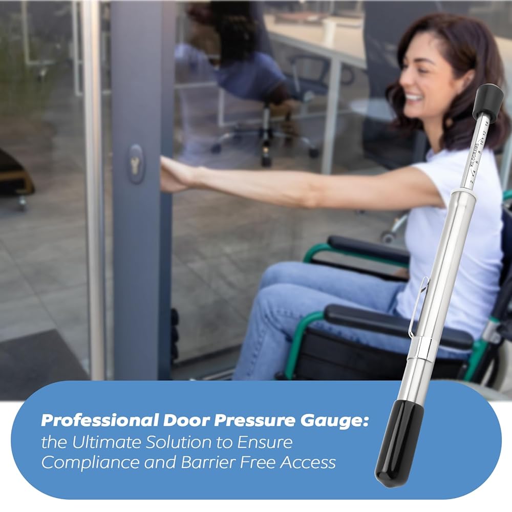 مقياس ضغط الباب بالدفع والسحب: نطاق القياس الدقيق لأداة قياس ضغط الباب هو من 0 إلى 35 رطلاً. (0 إلى 15.9 كجم). باستخدام هذه الأداة لضبط قوة الباب، يتم استخدامها للتأكد من أن قوة فتح الباب تلبي متطلبات ADA.