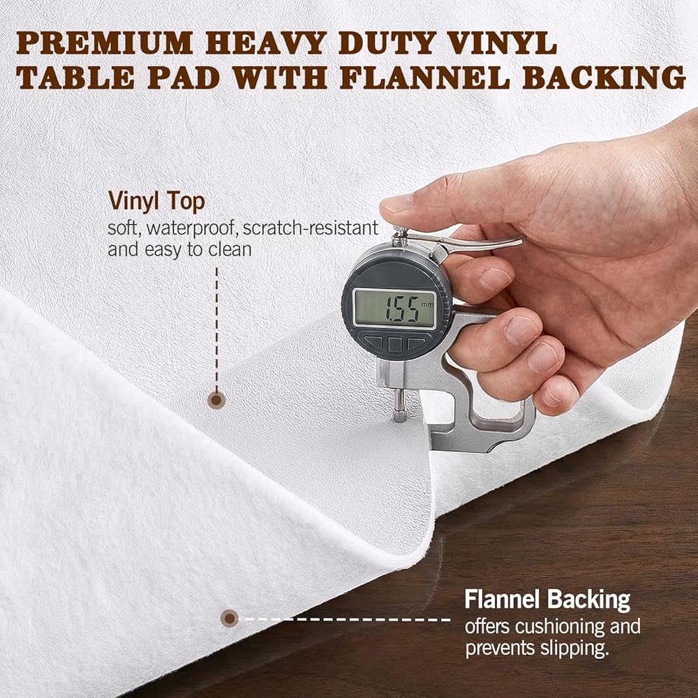 وسادة حماية طاولة من الفينيل لغرفة الطعام، مفرش طاولة مقاوم للحرارة والخدش مع دعامة من الفلانيل، سهل التنظيف والتشذيب، غطاء طاولة عالي التحمل مقاوم للماء، وسادة مقاومة للحرارة قابلة لإعادة الاستخدام مقاس 108 بوصة × 54 بوصة