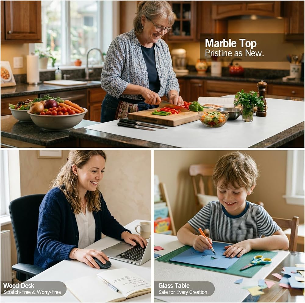 【حماية فائقة لسطح المكتب وشديدة التحمل】توقف عن القلق بشأن الخدوش العرضية الناتجة عن مخالب الحيوانات الأليفة أو الخدوش الناتجة عن القطع المركزية الثقيلة. يتميز واقي الفينيل الفاخر الخاص بنا بطبقة سميكة للغاية توفر وسادة فائقة لطاولتك الخشبية أو الزجاجية أو الرخامية. إنها متينة بما يكفي لتكون بمثابة سجادة مكتب ثابتة للكمبيوتر المحمول، مما يضمن بقاء أثاثك باهظ الثمن في حالة أصلية على الرغم من البلى والتمزق اليومي.