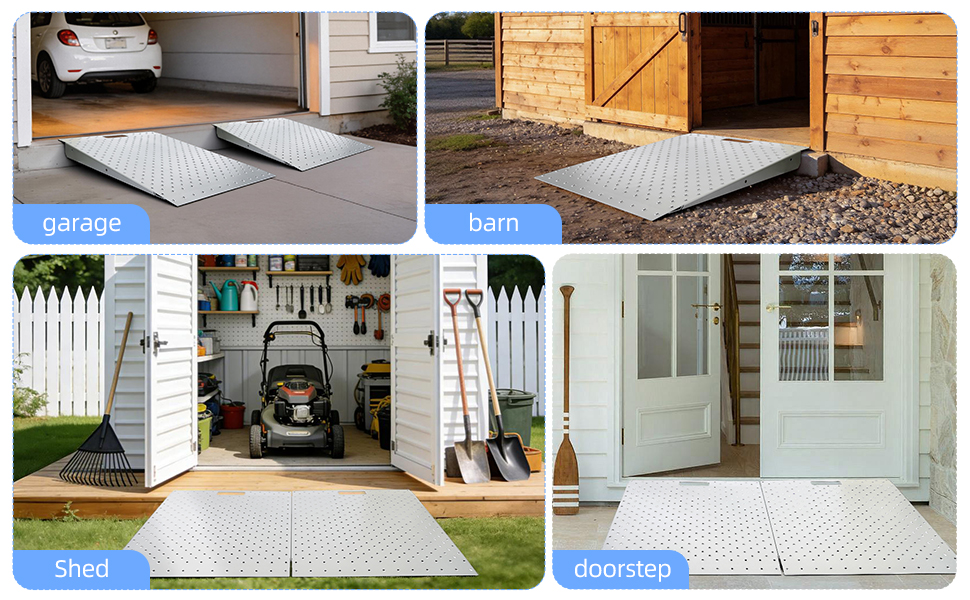 [منحدر متعدد الوظائف قابل للتعديل للارتفاع] يعمل هذا المنحدر على سد فروق الارتفاع حتى 6.5 بوصة (مناسب لنطاقات الارتفاع من 2.5 بوصة إلى 6.5 بوصة). مثالية للسقائف أو المرائب أو الحظائر أو الخطوات أو ورش العمل أو أي عتبة مرتفعة قليلاً تتطلب ممرًا آمنًا وقويًا، فهي توفر انتقالًا مستقرًا ومقاومًا للانزلاق في إعدادات متنوعة، مما يتيح الوصول بدون عوائق.